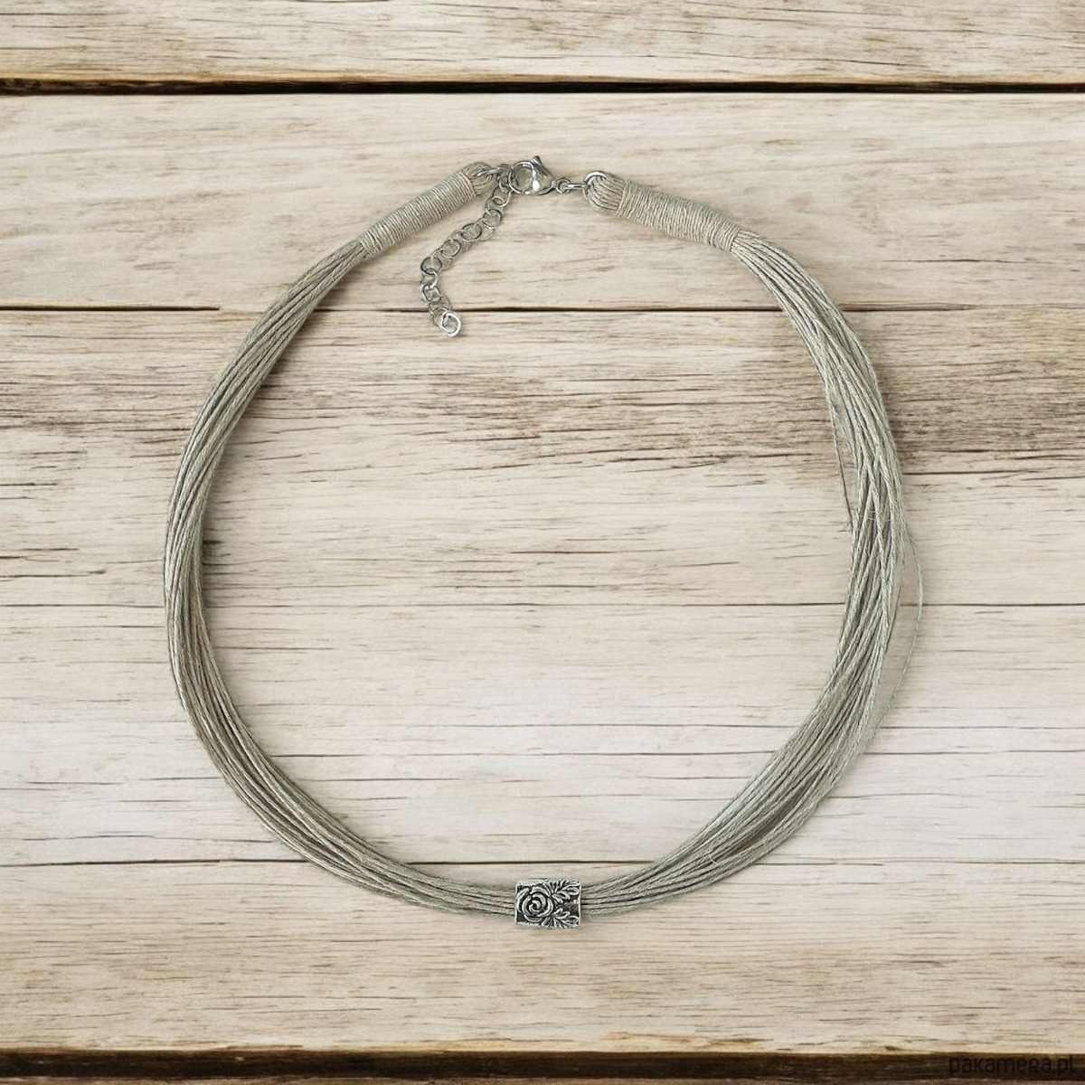 Materiały: naturalny len, metalowa przekładka, zapięcie stal chirurgiczna