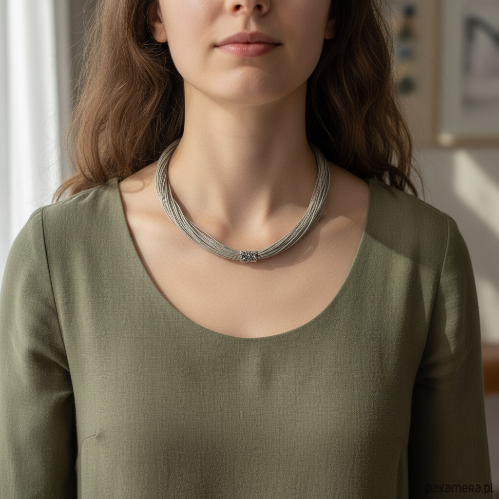 Prosty, naturalny dodatek pasujący do sukienek, bluzek koszulowych lub swetrów