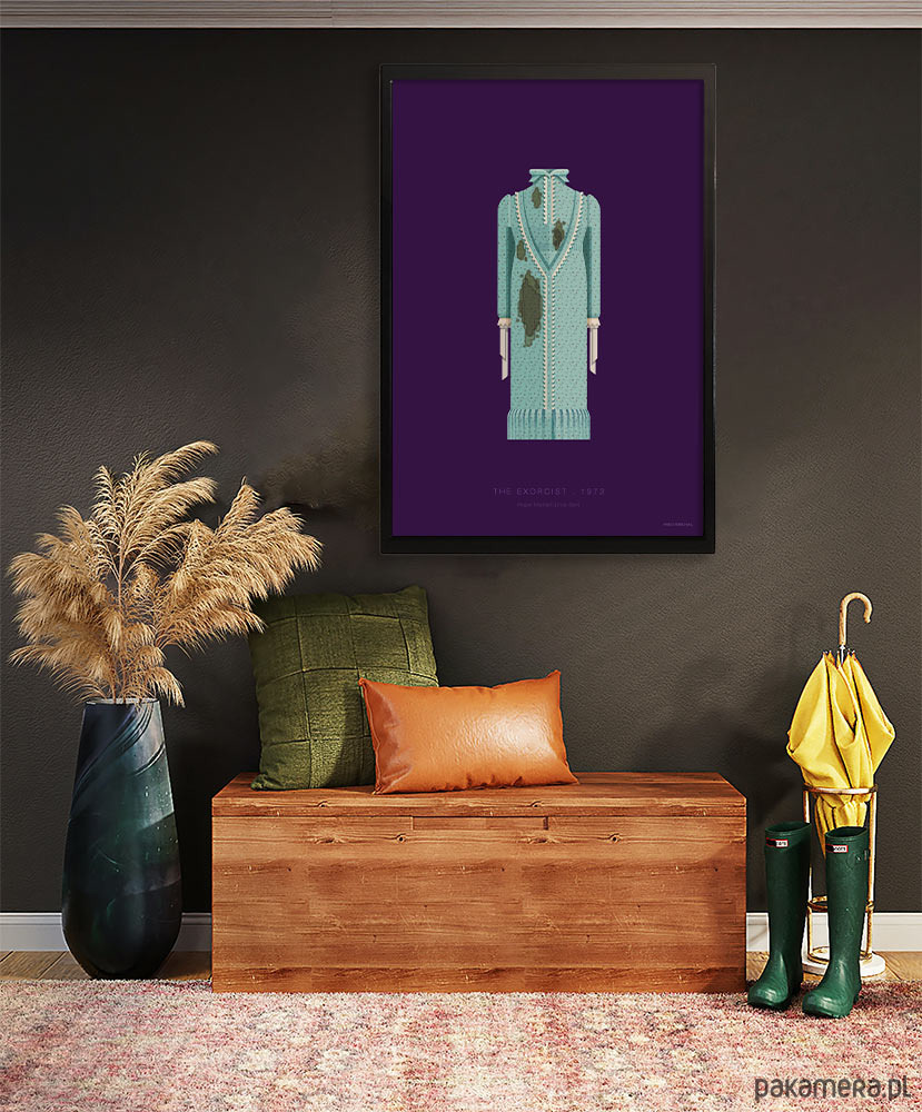Plakat inspirowany inspirowany filmem Egzorcysta (The Exorcist), reż. William Friedkin, tylko dla fanów horrorów o mocnych nerwach. Świetnie odtworzony kostium z przerażającymi detalami opętanej Regan MacNeil, w którą w filmie wciela się Linda Blair, za co została nominowana do Oscara.