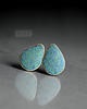 Ceramiczne kolczyki w formie sztyftów, ręcznie wykonane z delikatnej czekoladowobrązowej gliny kamionkowej, jednostronnie szkliwione mieszanką zielonych i błękitnych szkliw z efektem plamek, na antyalergicznych sztyftach w kolorze srebrnym. Długość ok. 13mm. Polecam