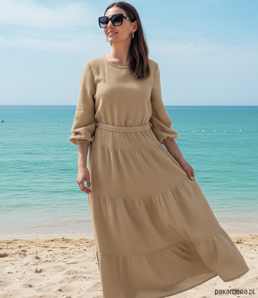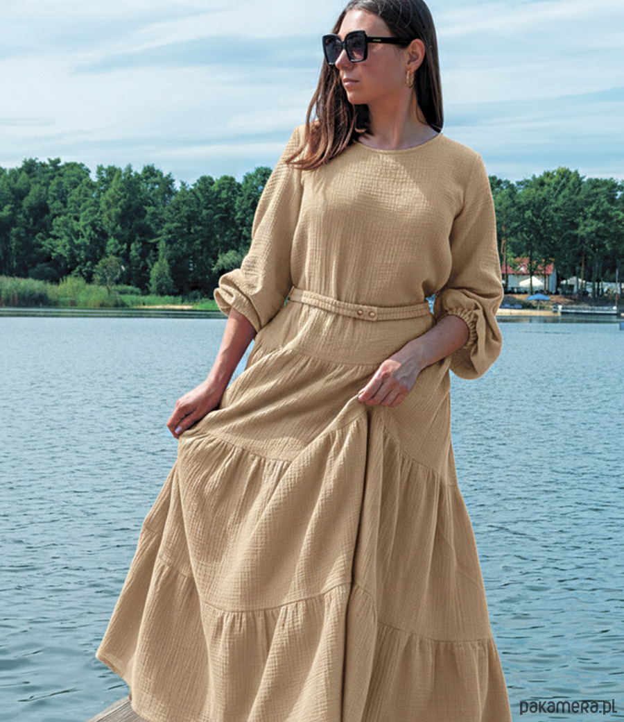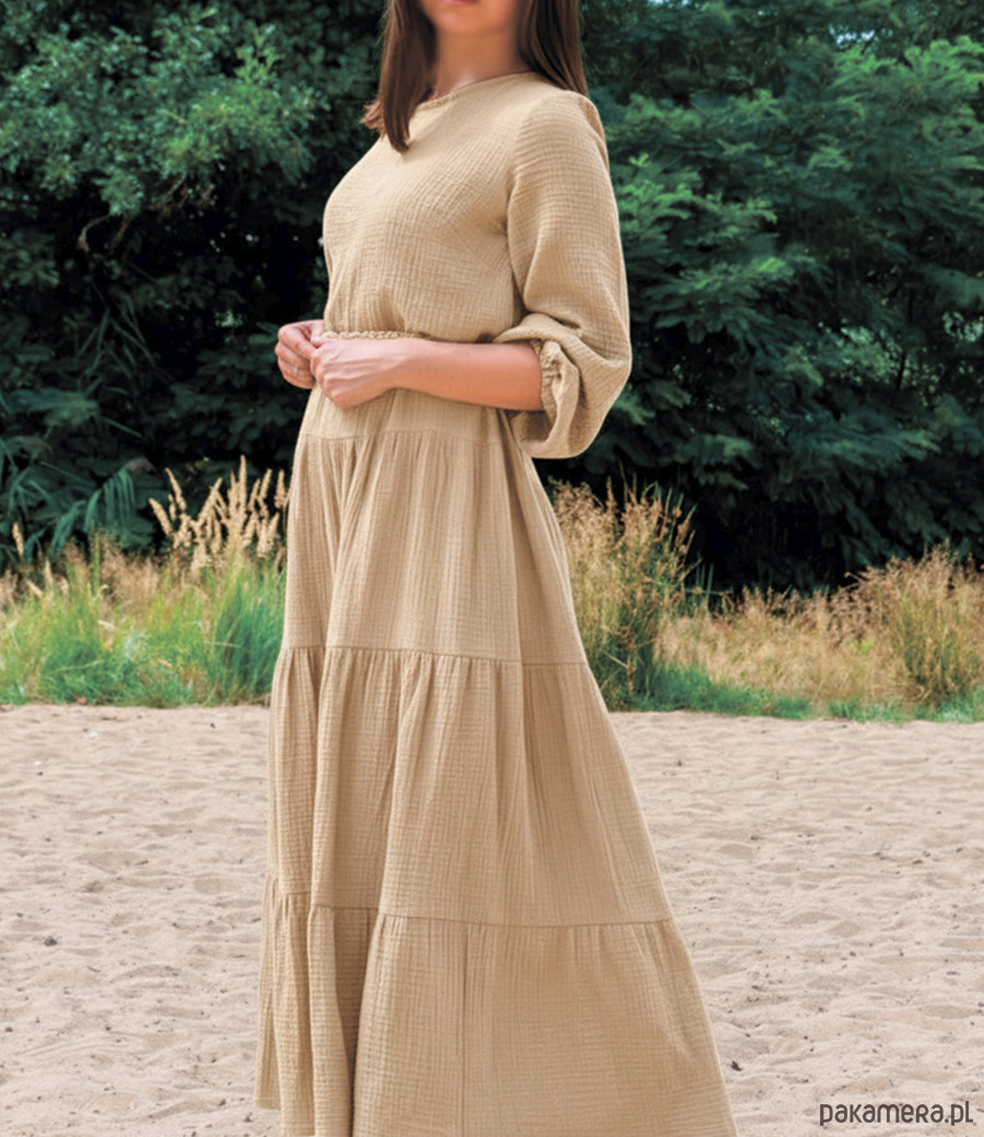 Eko długa bieżowa muślinowa sukienka Sandra