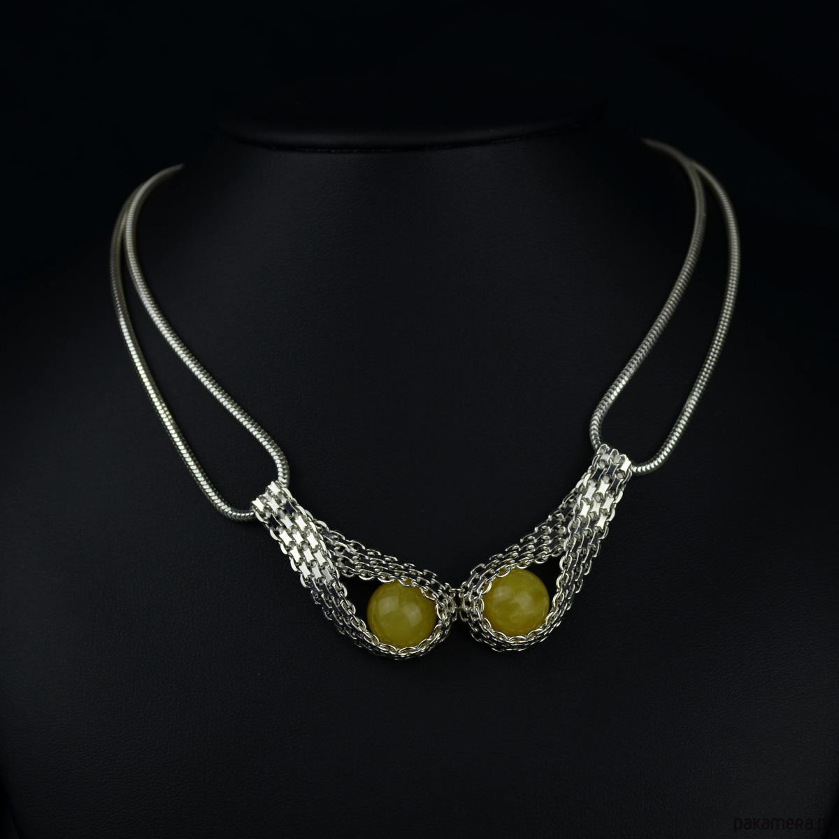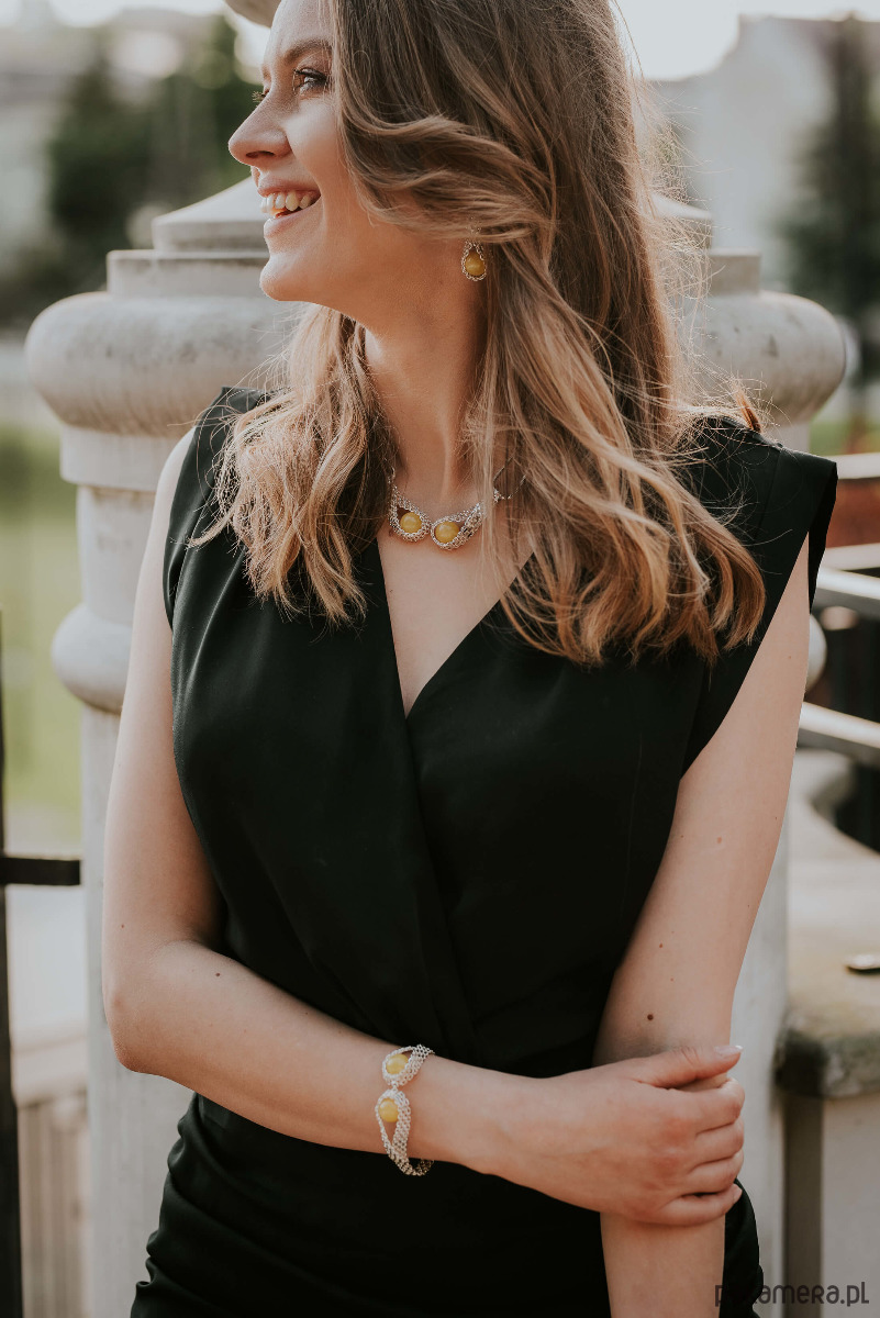 Ekskluzywna srebrna kolia z bursztynem
