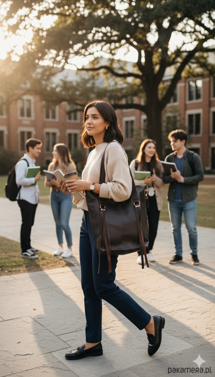 - Detale: frędzle, zdobienia ze złotymi okuciami, regulowany pasek