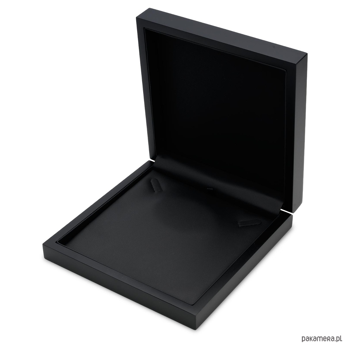 Bardzo eleganckie, duże drewniane pudełko w którym można umieścić naszyjnik, kolię, perły, komplet bizuterii . Pudełko wykonane jest bardzo solidnie, środek z czarnego nobuku wyjmowany z rozkładaną podpórką do lepszej prezentacji biżuterii. Pudełko pakowane jest w bardzo ładne, grube, tekturowe pudełko ochronne.