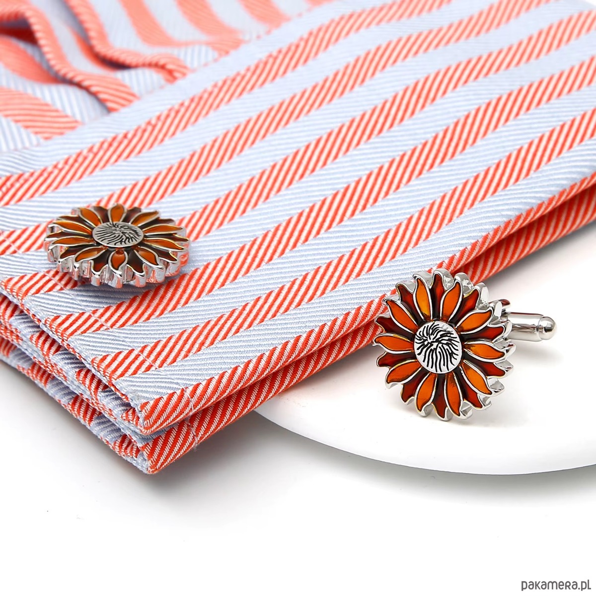 Eleganckie spinki do mankietów w kształcie kwiatów w intensywnym pomarańczowym kolorze to wyjątkowy dodatek dla mężczyzn ceniących styl i oryginalność. Ich subtelny, ale wyrazisty design doda charakteru każdej stylizacji – od klasycznych garniturów po mniej formalne zestawy. Wykonane z wysokiej jakości materiałów, zapewniają trwałość i komfort noszenia. Doskonałe na specjalne okazje, takie jak wesela, bankiety czy spotkania biznesowe, a także jako nietuzinkowy prezent dla eleganckiego mężczyzny.