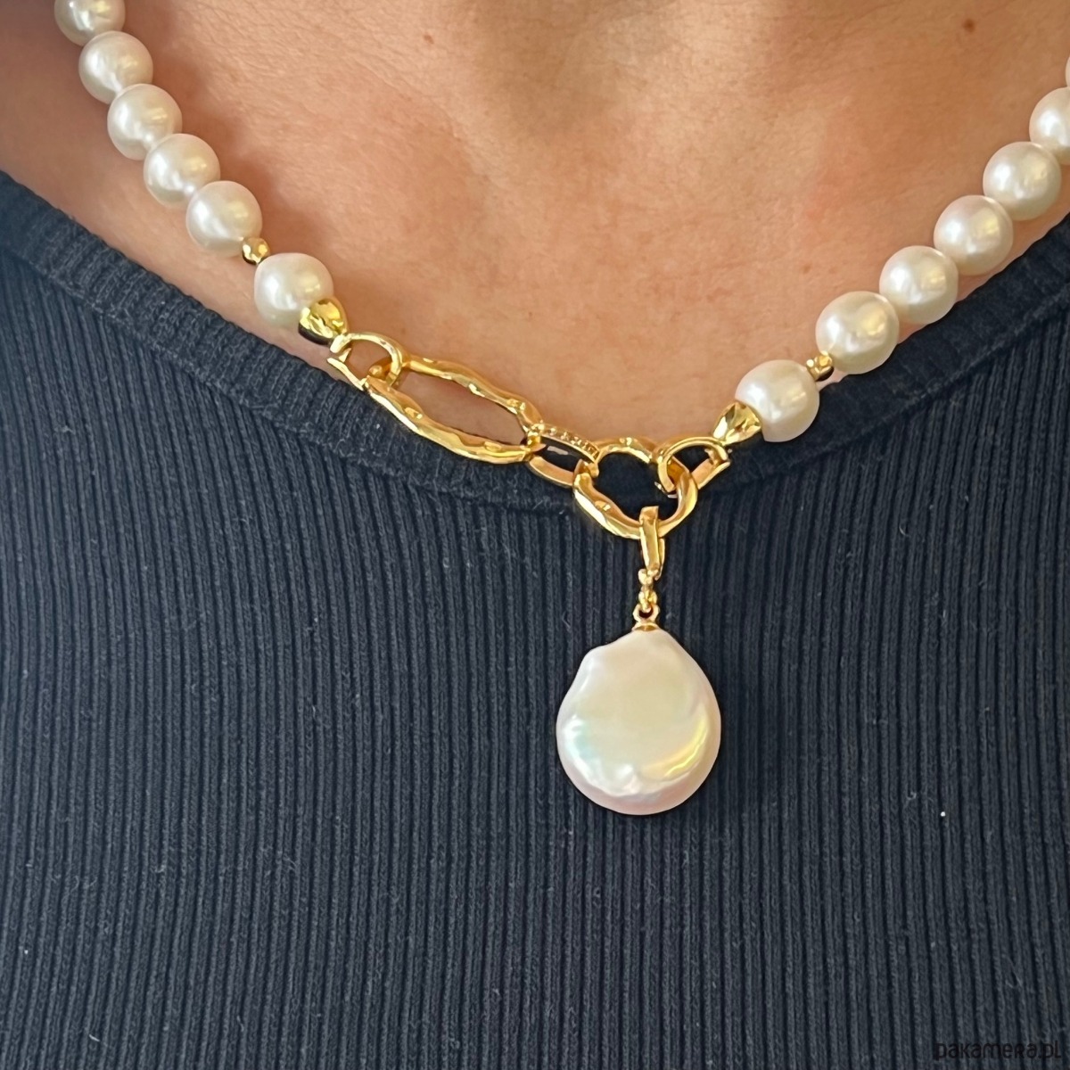 Sznur pereł z dopinkami: z elementem złotym lub z elementem z dużą perłą. Naszyjnik można nosić na trzy sposoby. Za każdym razem jest inny . Sznur pereł to inwestycja w jakość i piękno. Wykonany z wysokiej jakości pereł , ten naszyjnik zachwyci Cię swoim połyskiem i trwałością. Jego długość pozwala na wiele kreatywnych aranżacji. Każda perła została starannie wyselekcjonowana, aby zapewnić najwyższą jakość produktu."