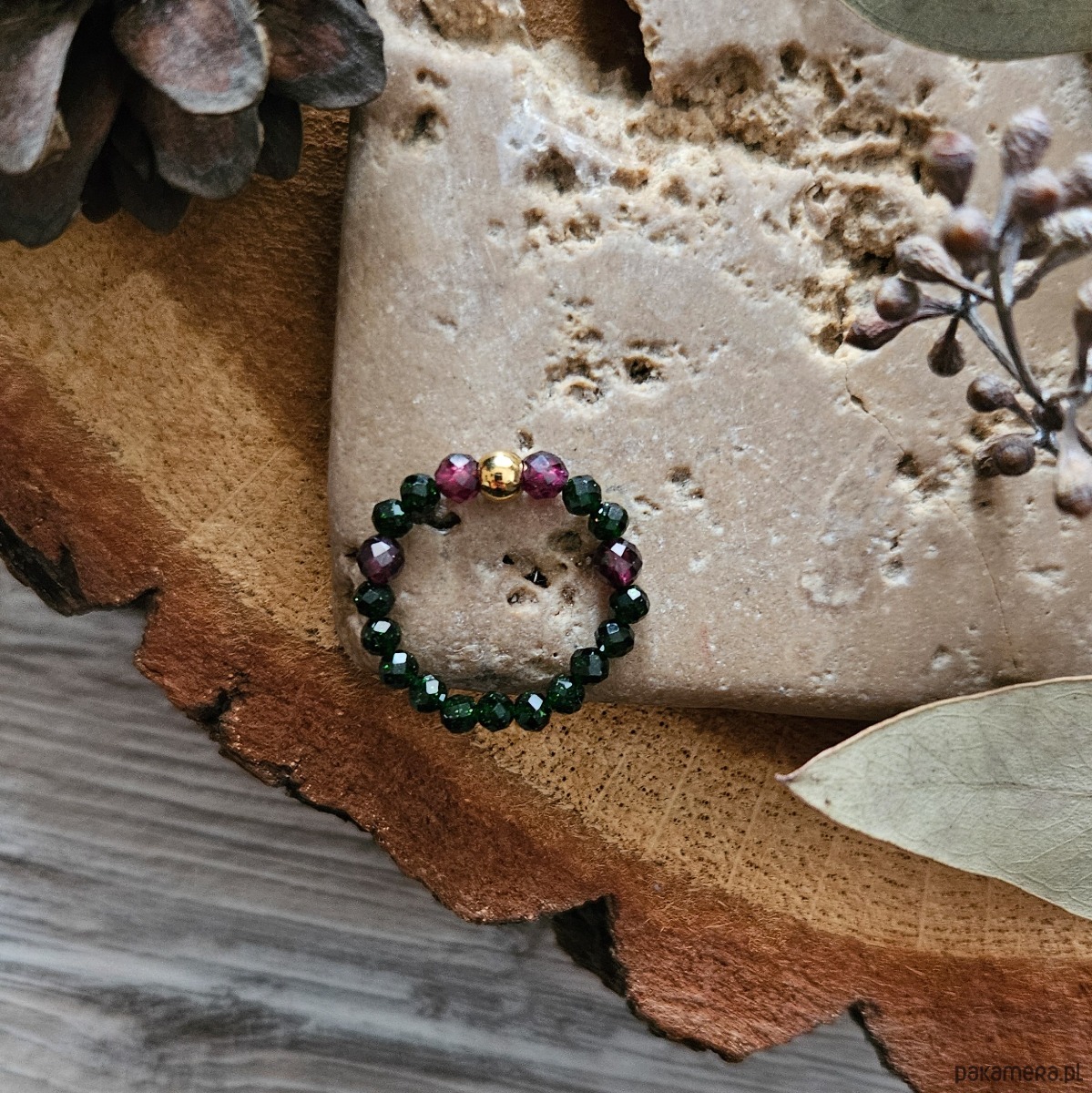 Elastyczny pierścionek ze szmaragdem Nilu i granatem