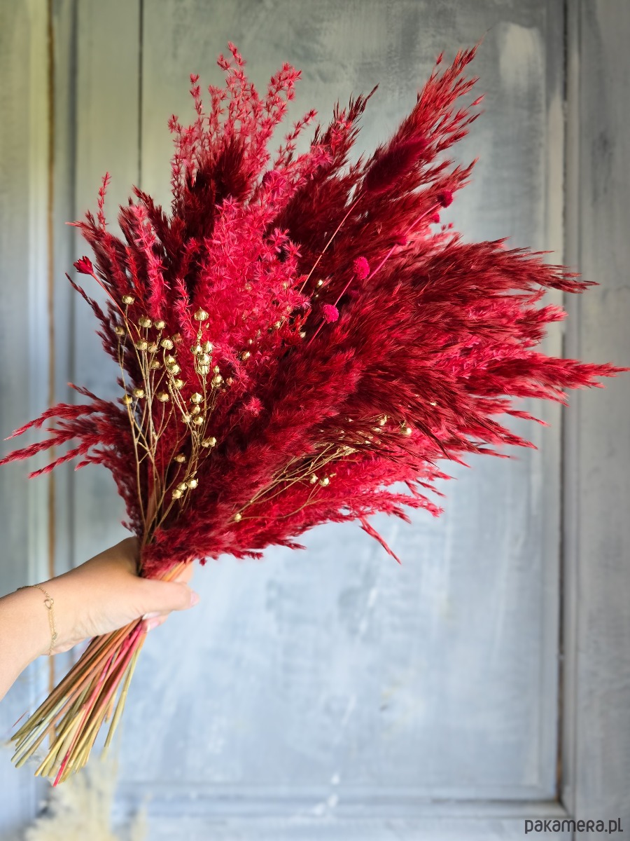💐 Elegancki bordowo-złoty bukiet w stylu boho-glam