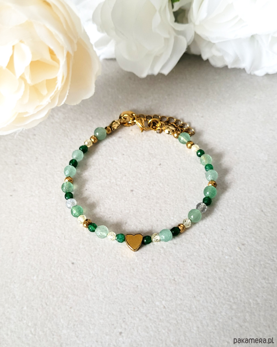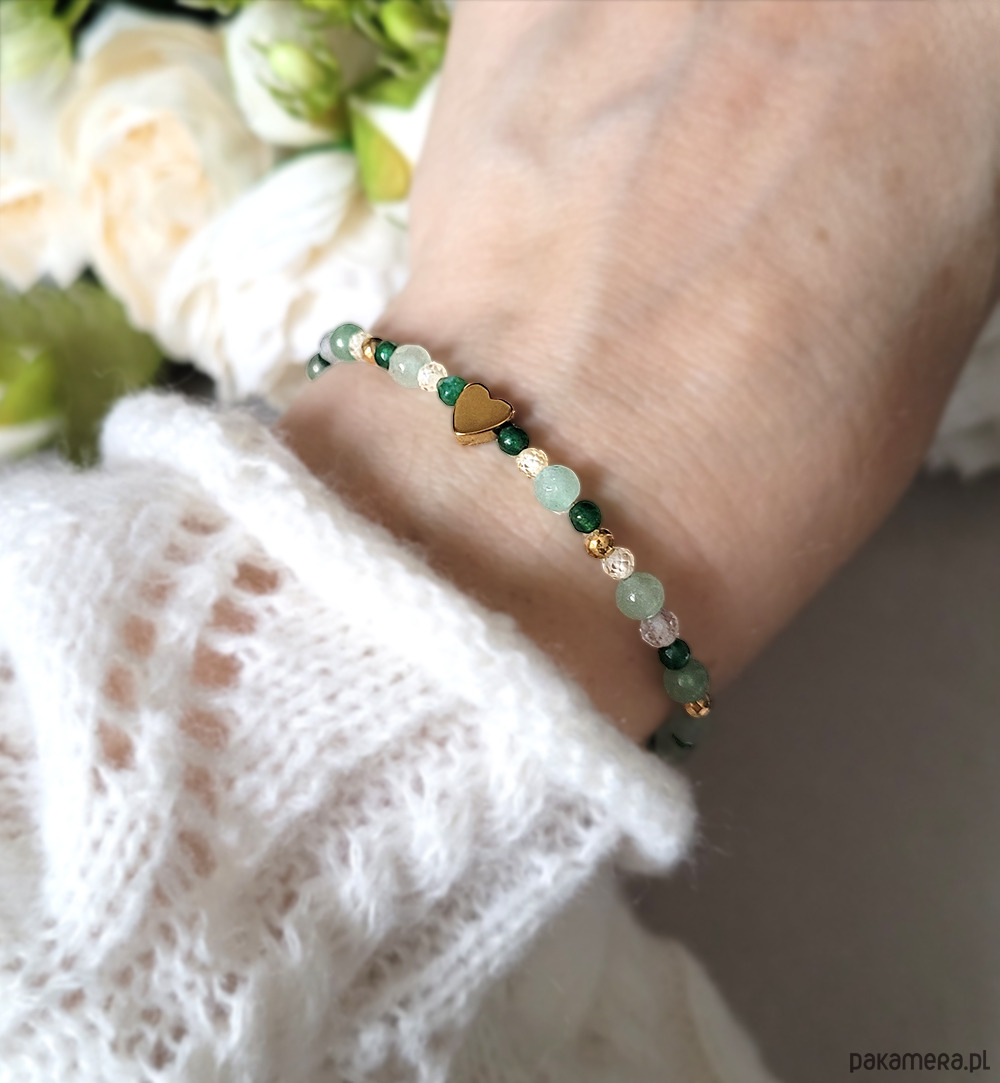 Elegancka bransoletka z Awenturynem i serduszkiem