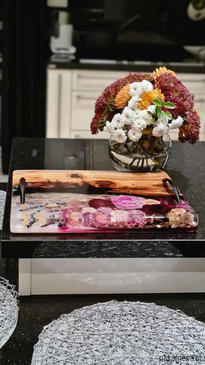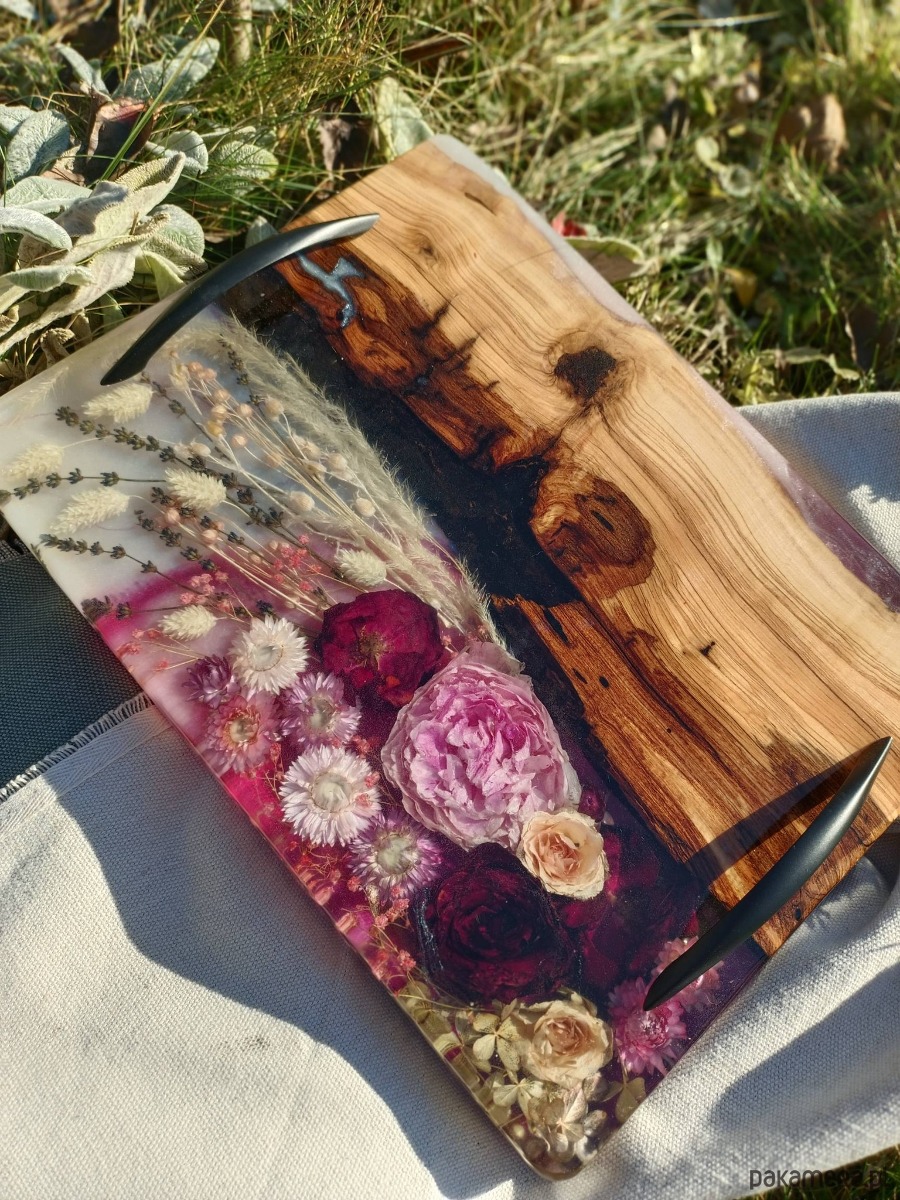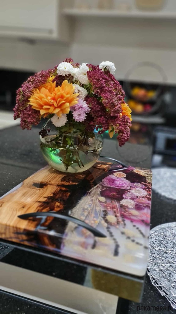 Ta designerska deska doskonale sprawdzi się podczas serwowania przekąsek, deserów czy śniadań, ale równie pięknie zaprezentuje się jako element dekoracyjny w kuchni lub jadalni. To także wyjątkowy pomysł na prezent – na ślub, rocznicę, Dzień Mamy lub dla każdej osoby ceniącej subtelne, kwiatowe akcenty i rękodzieło.