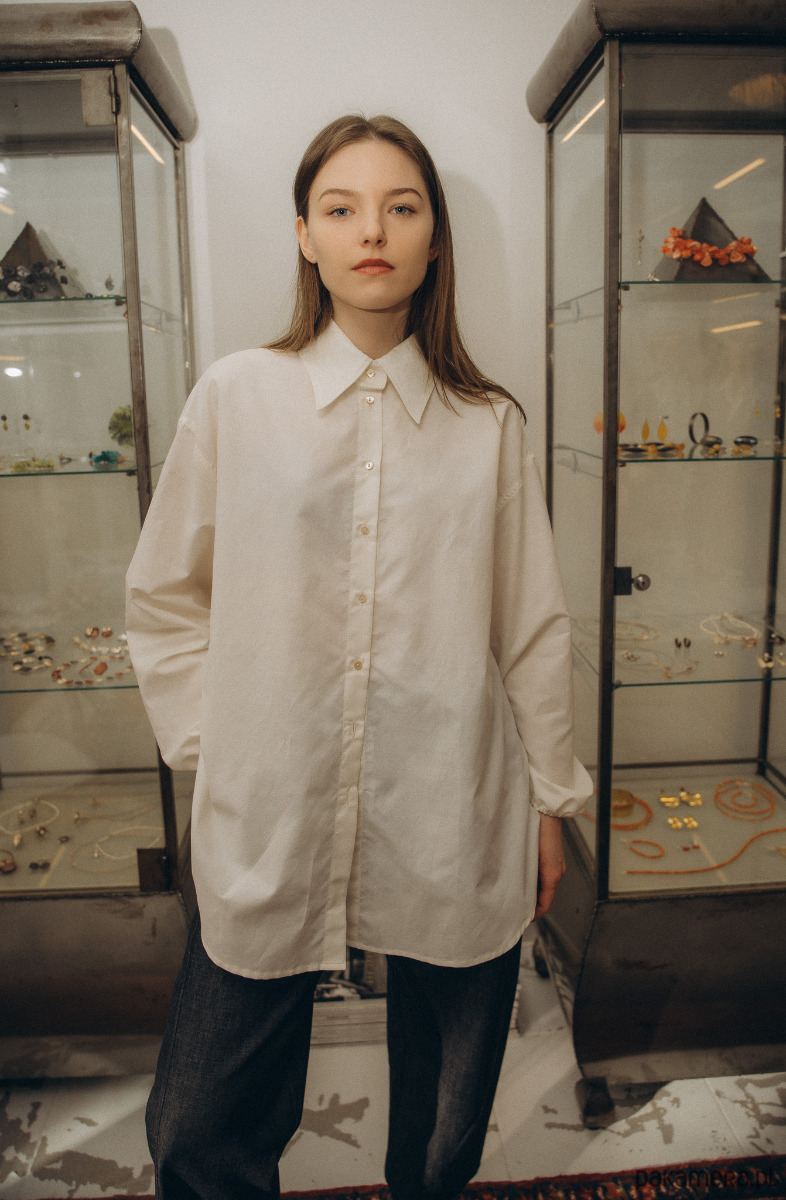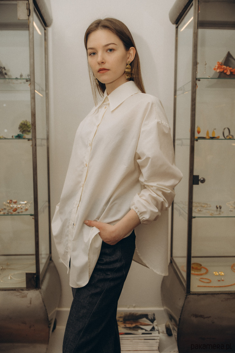 Koszula w odcieniu śmietankowej bieli to propozycja luźnej koszuli wykonana z leciutkiej, przewiewnej, eleganckiej i mięciutkiej bawełny włoskiej.
