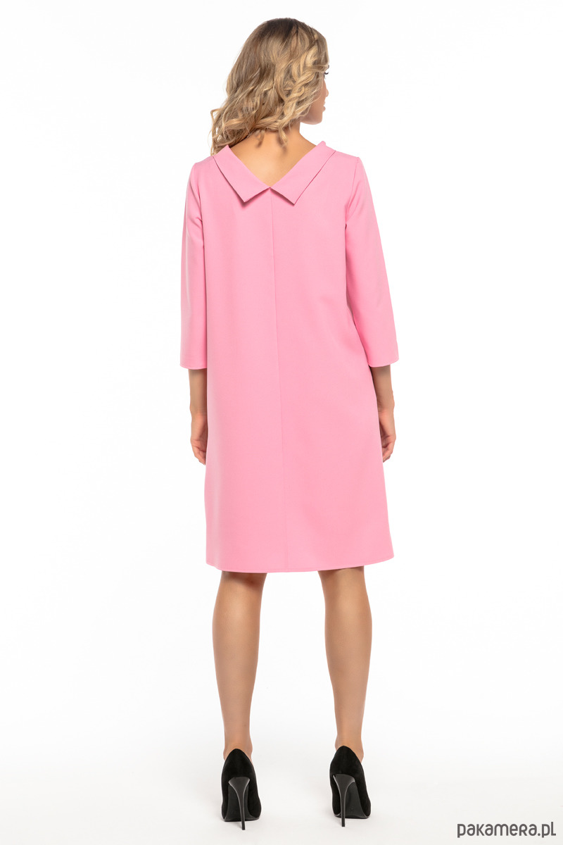 Elegancka sukienka z tkaniny z kołnierzykiem w stylu Jackie Kennedy. Rękaw 3/4. Tył cięty.