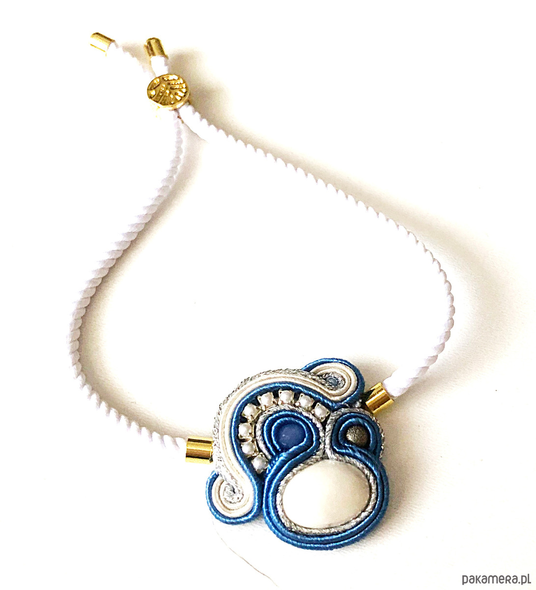 Elegancka bransoletka wykonana w technice haftu sutaszowego w odcieniach: niebieskiego i bieli Długość regulowana.