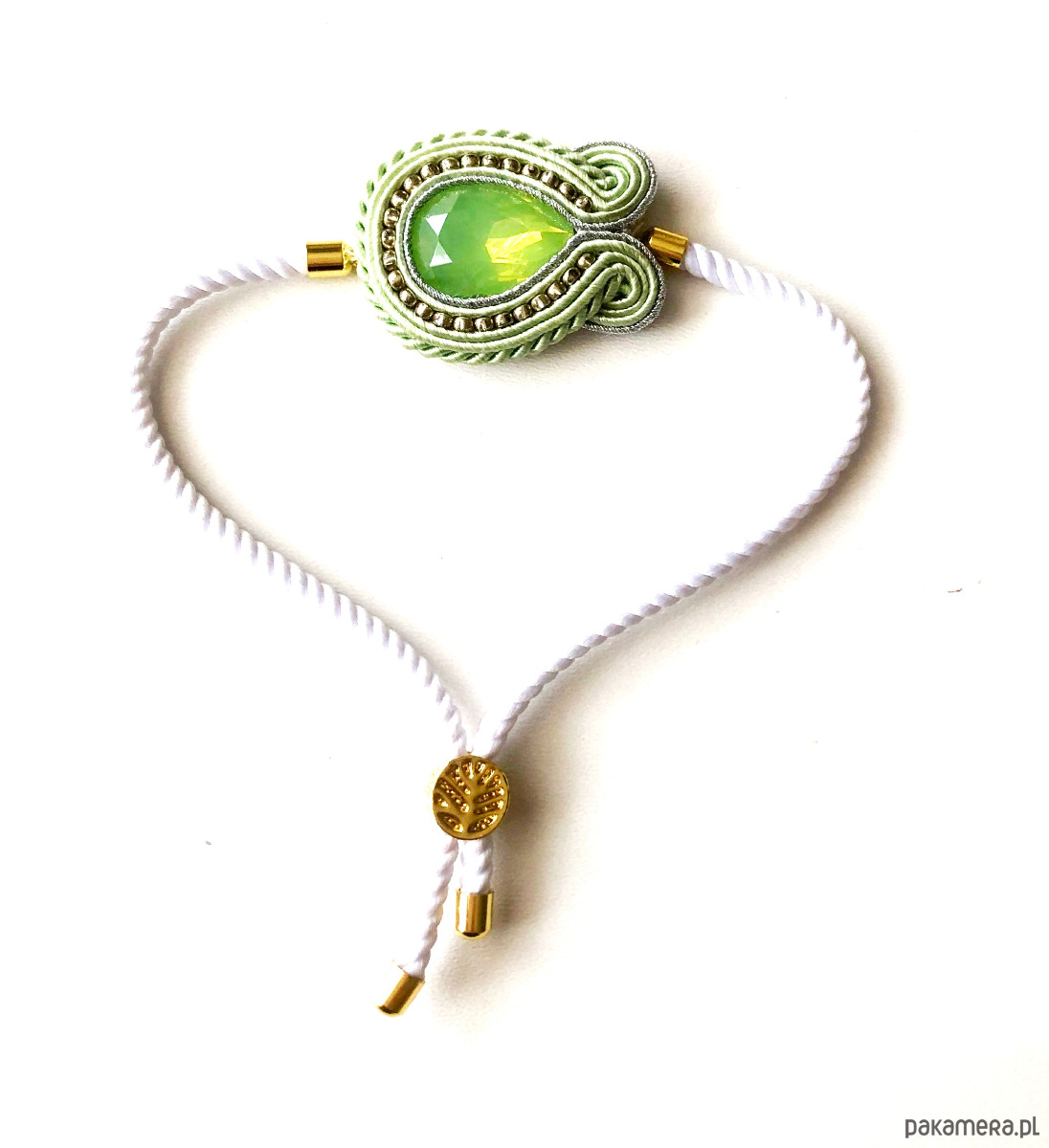 Elegancka bransoletka wykonana w technice haftu sutaszowego w odcieniach: zieleni i bieli Długość regulowana.