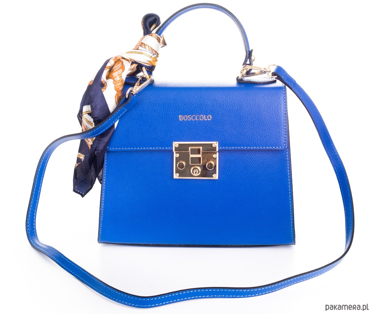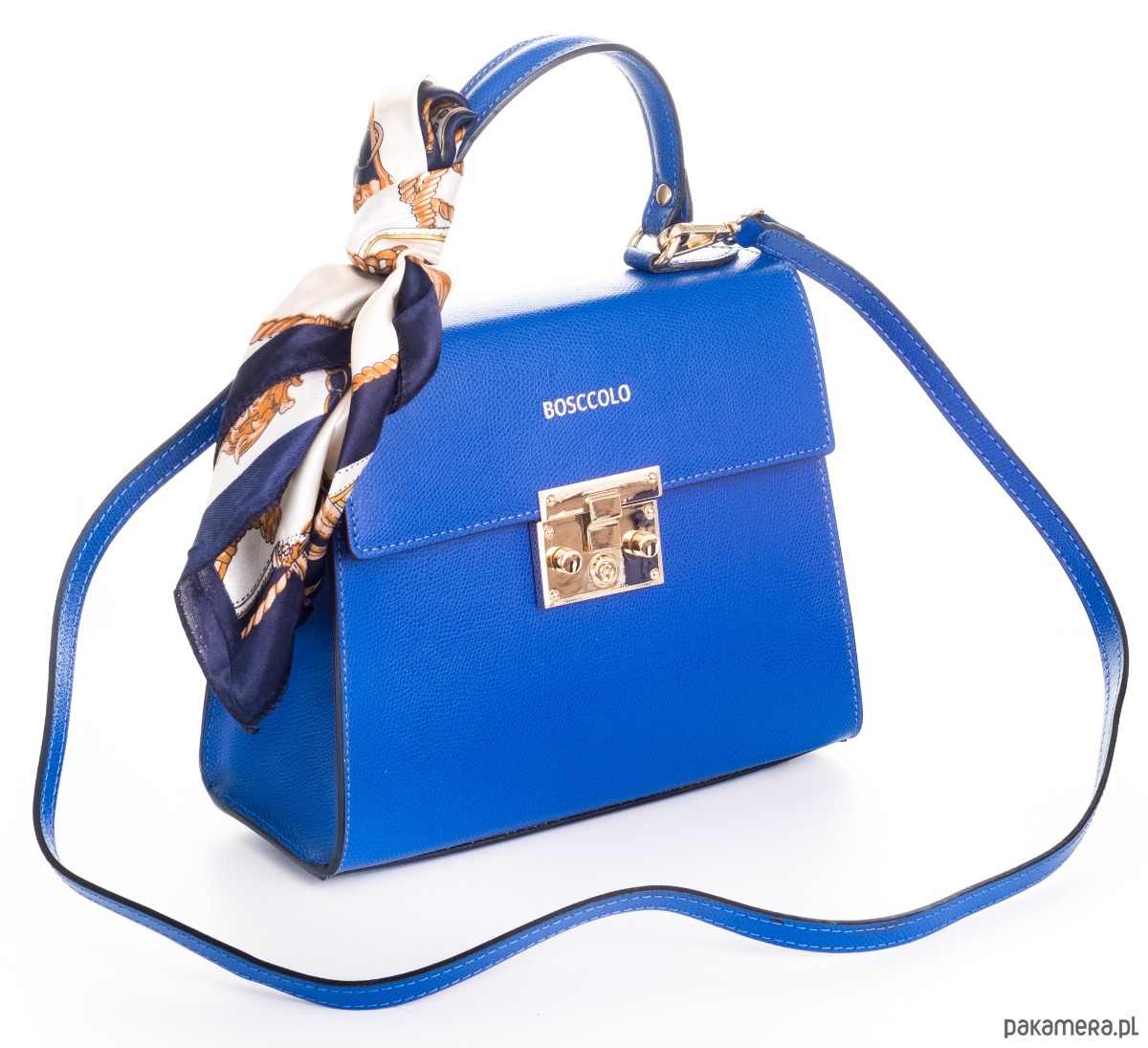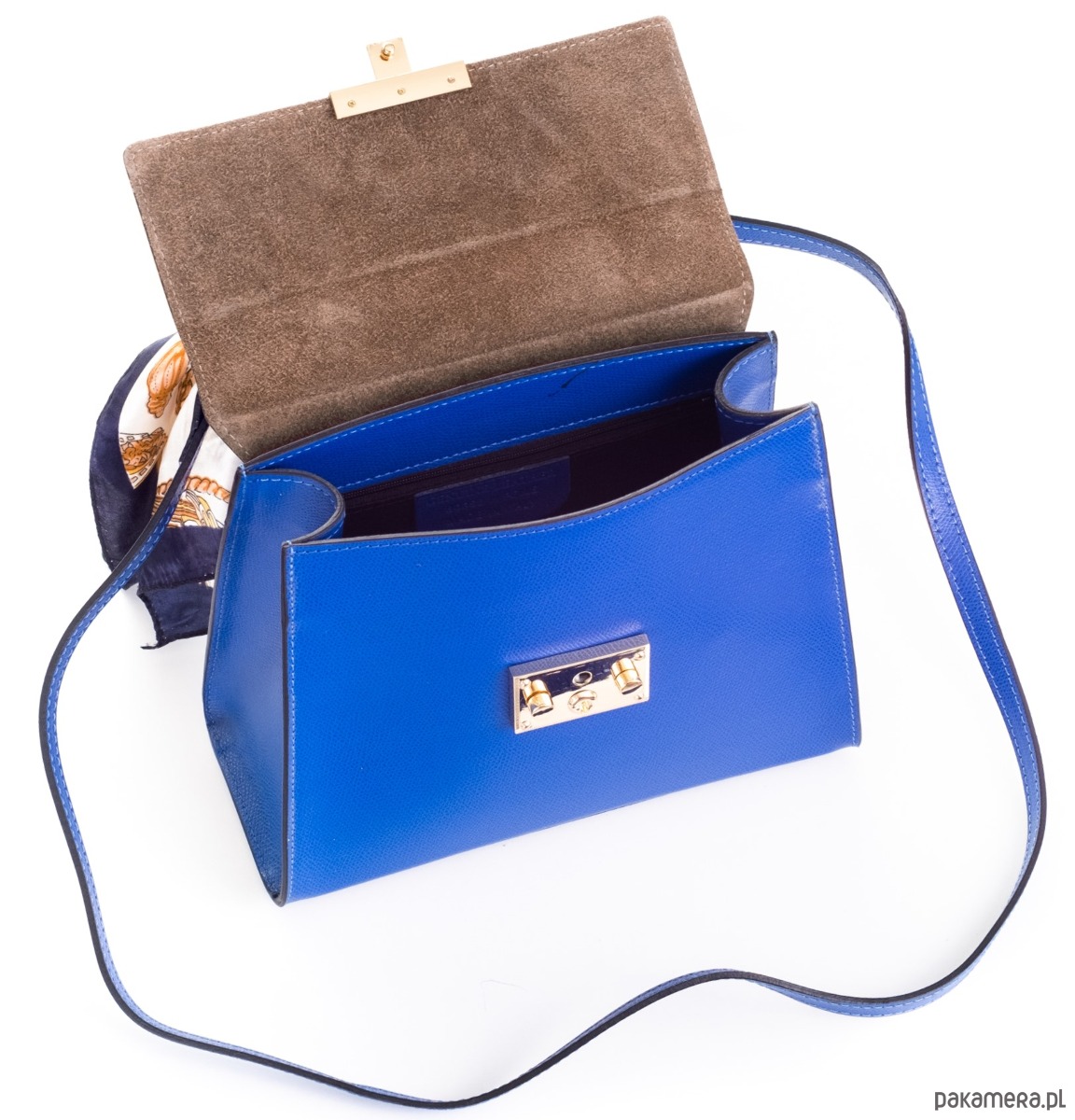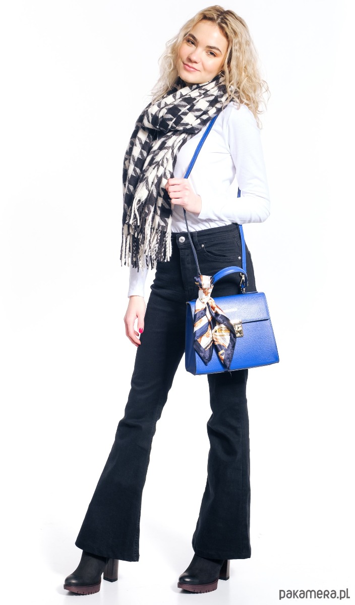 Kuferek, do ręki lub na ramię, dopinany pasek i dopasowana apaszka.