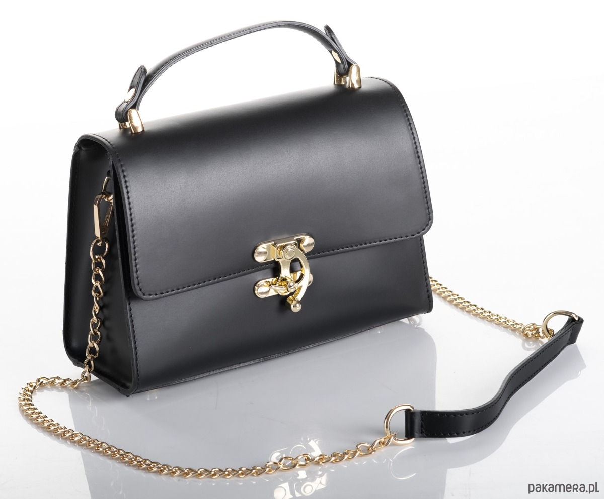 Bardzo elegancka torebka ze skóry naturalnej, oryginalne, ozdobne zamknięcie, torebka do ręki lub na ramię.