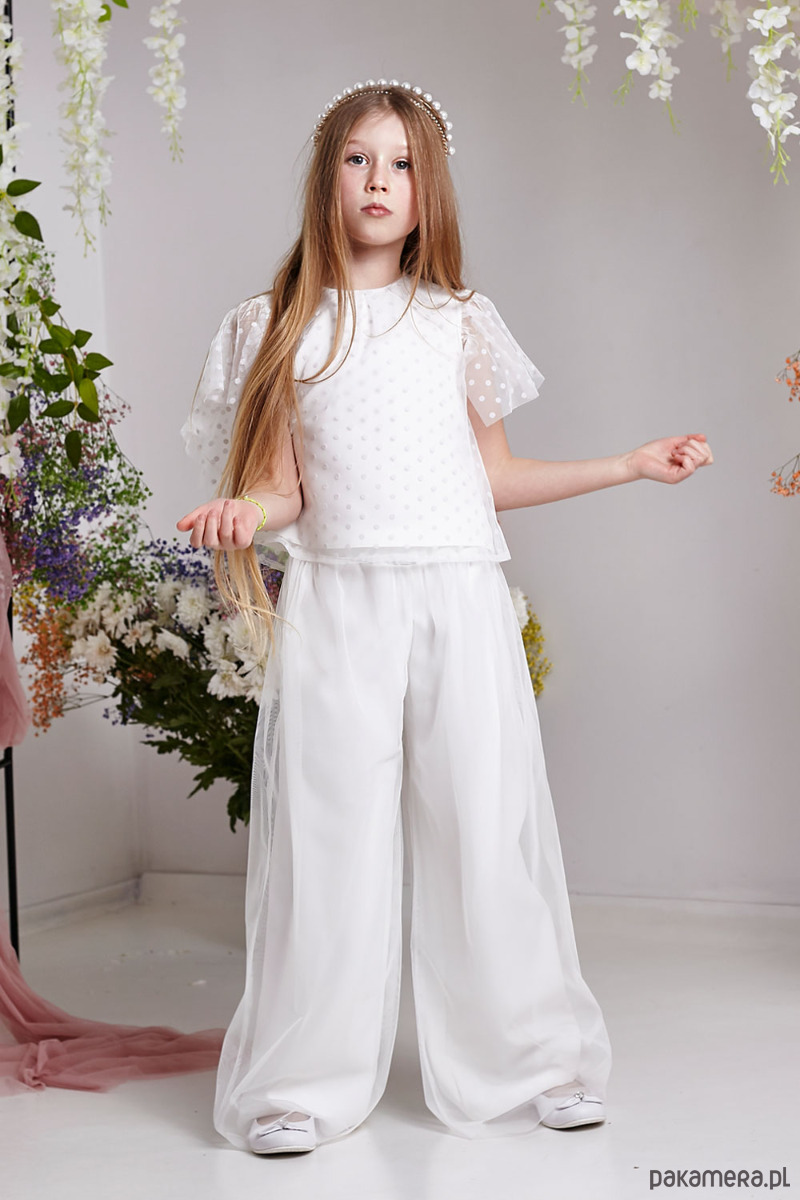 Pod spodem znajduję się tkanina bluzkowa. Marszczenia i motylkowe rękawy nadają finezji.
