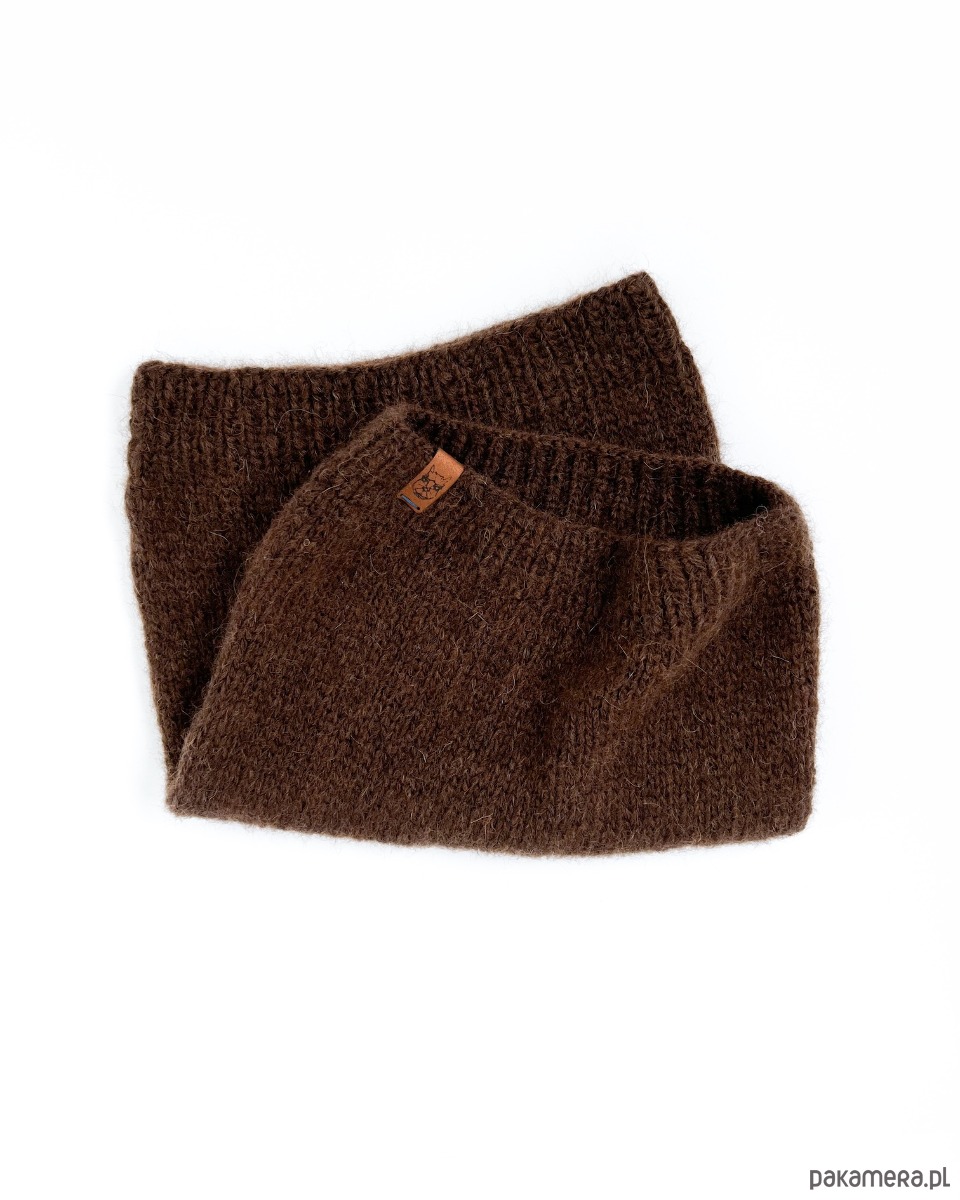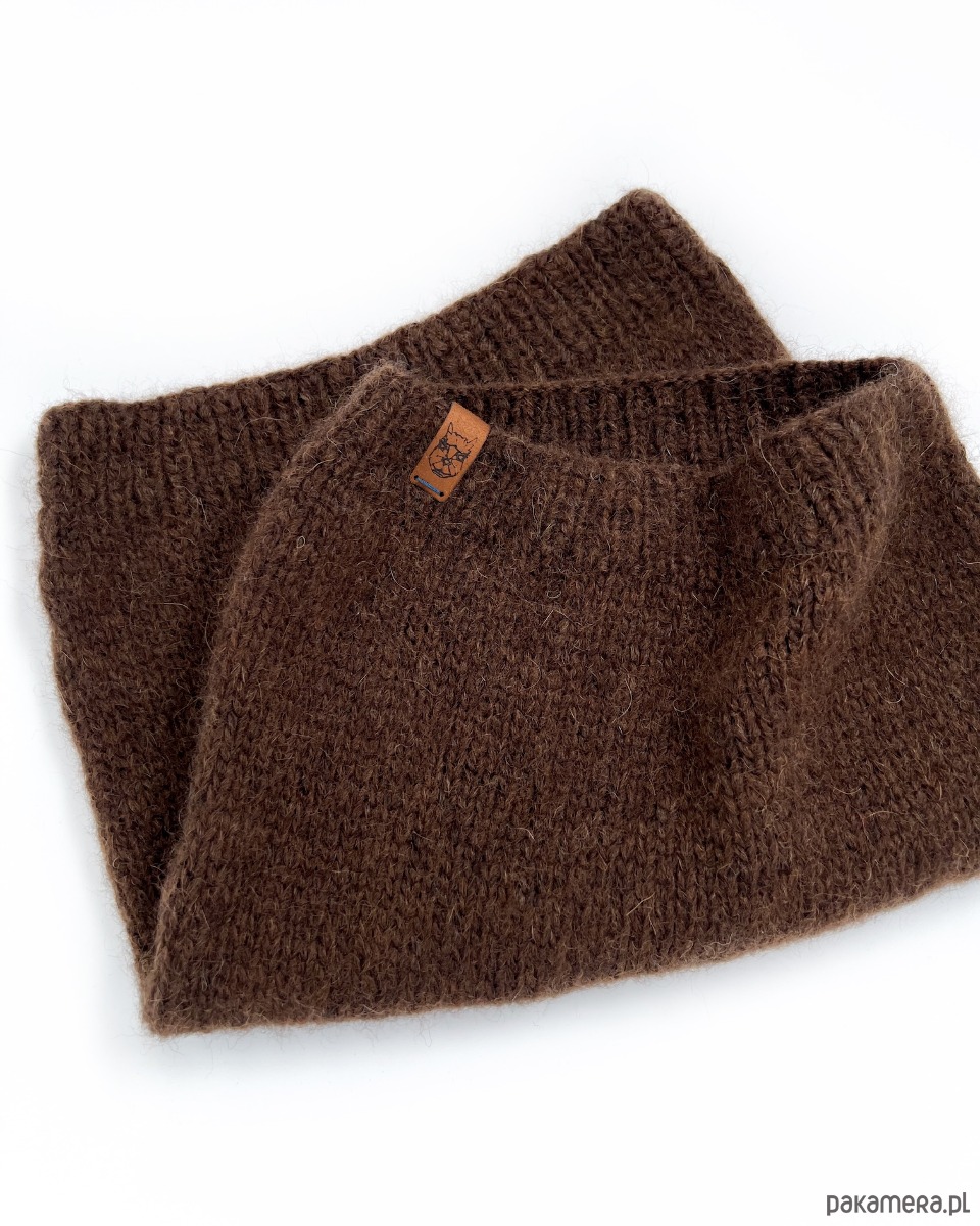 Elegancki brązowy szalik typu komin z wełny alpaki czekoladowa mokka