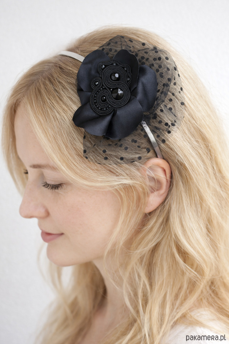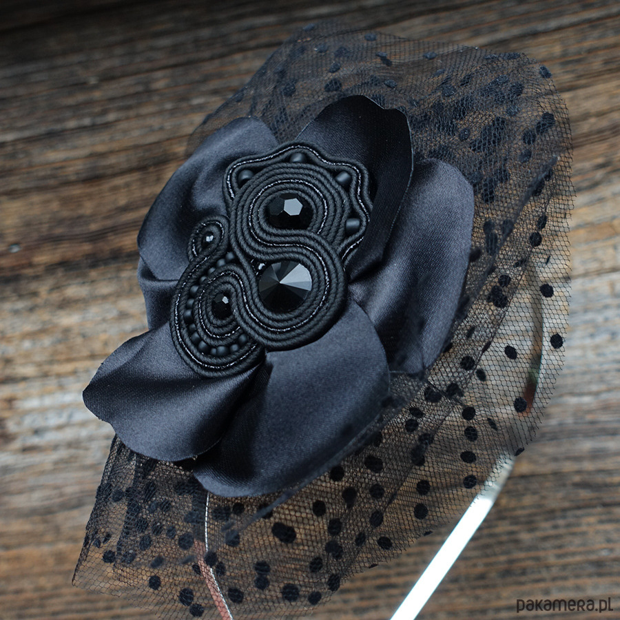 Elegancki czarny fascynator sutasz