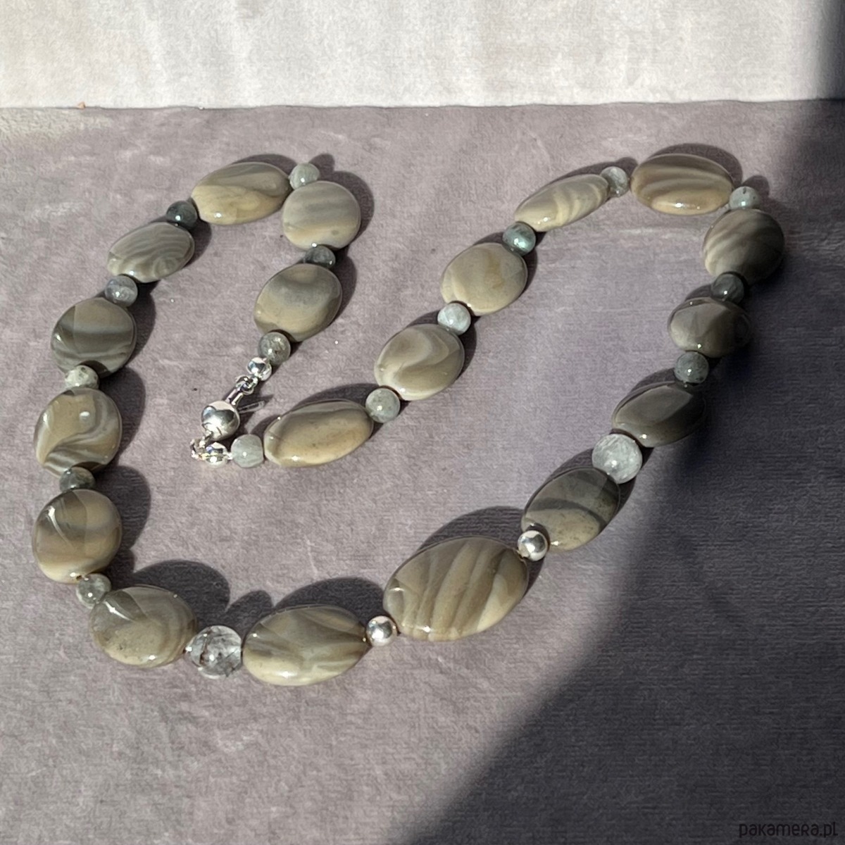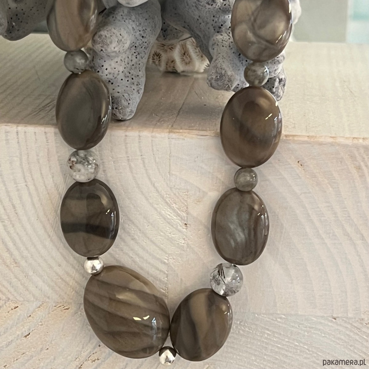 Elegancki Naszyjnik z Kamieniami w Kolorze Taupe/Brązu - Krzemień Pasiasty Mousse.