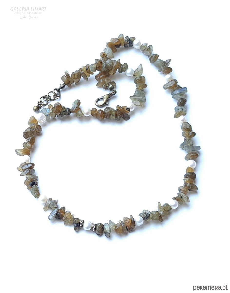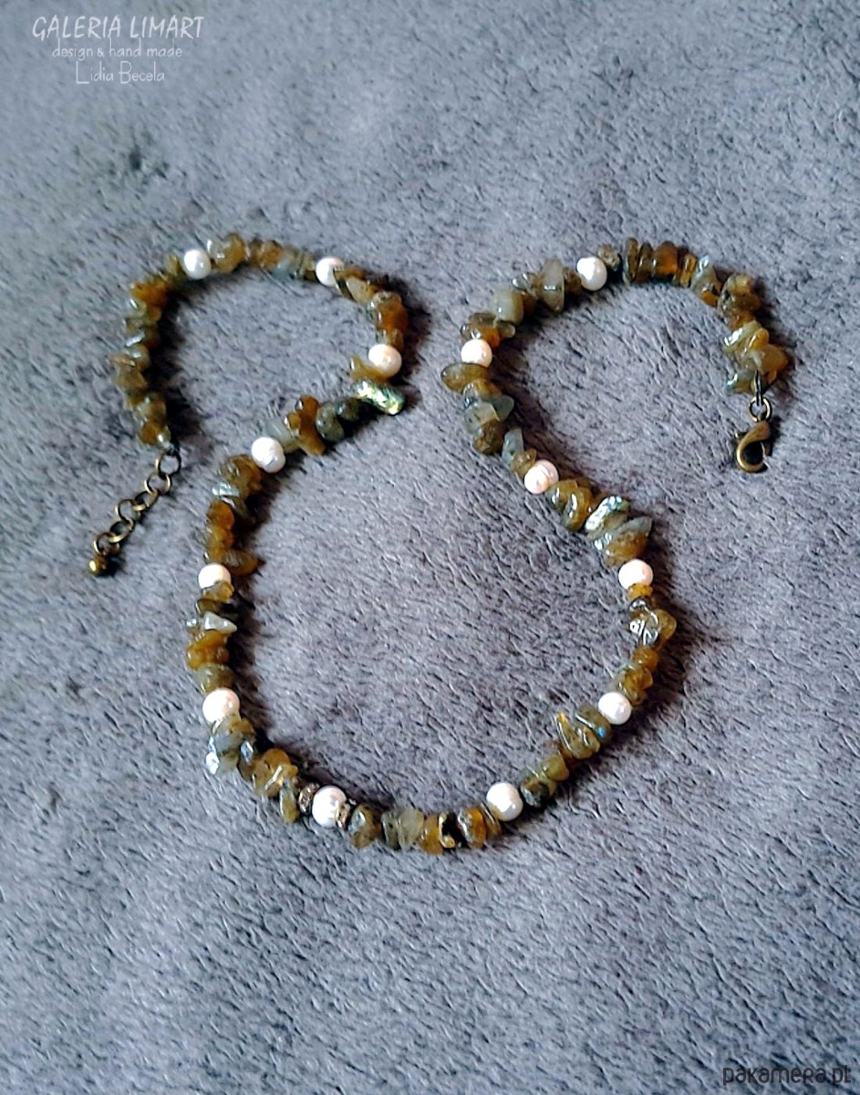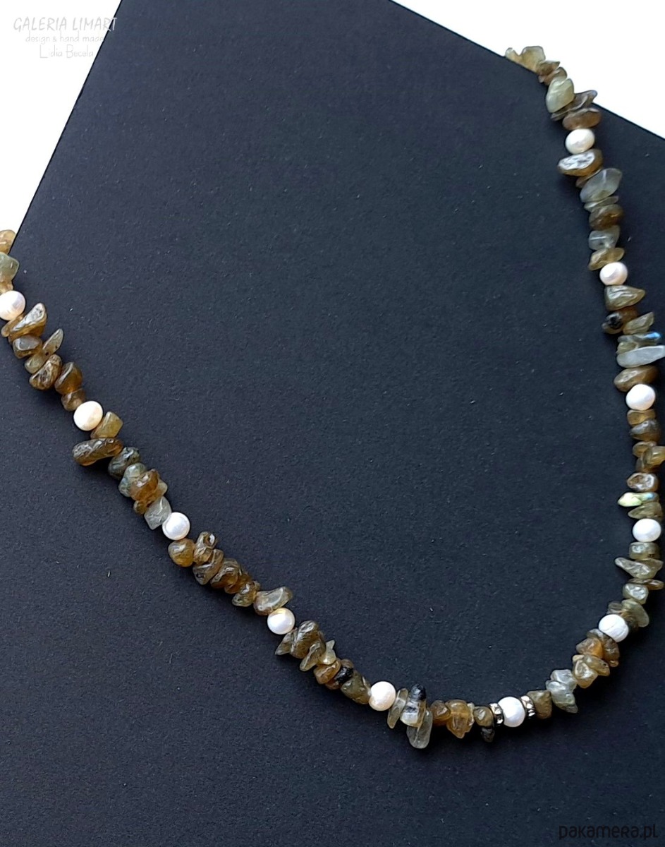 Elegancki naszyjnik z labradorytu i pereł ręcznie robiony prezent dla niej