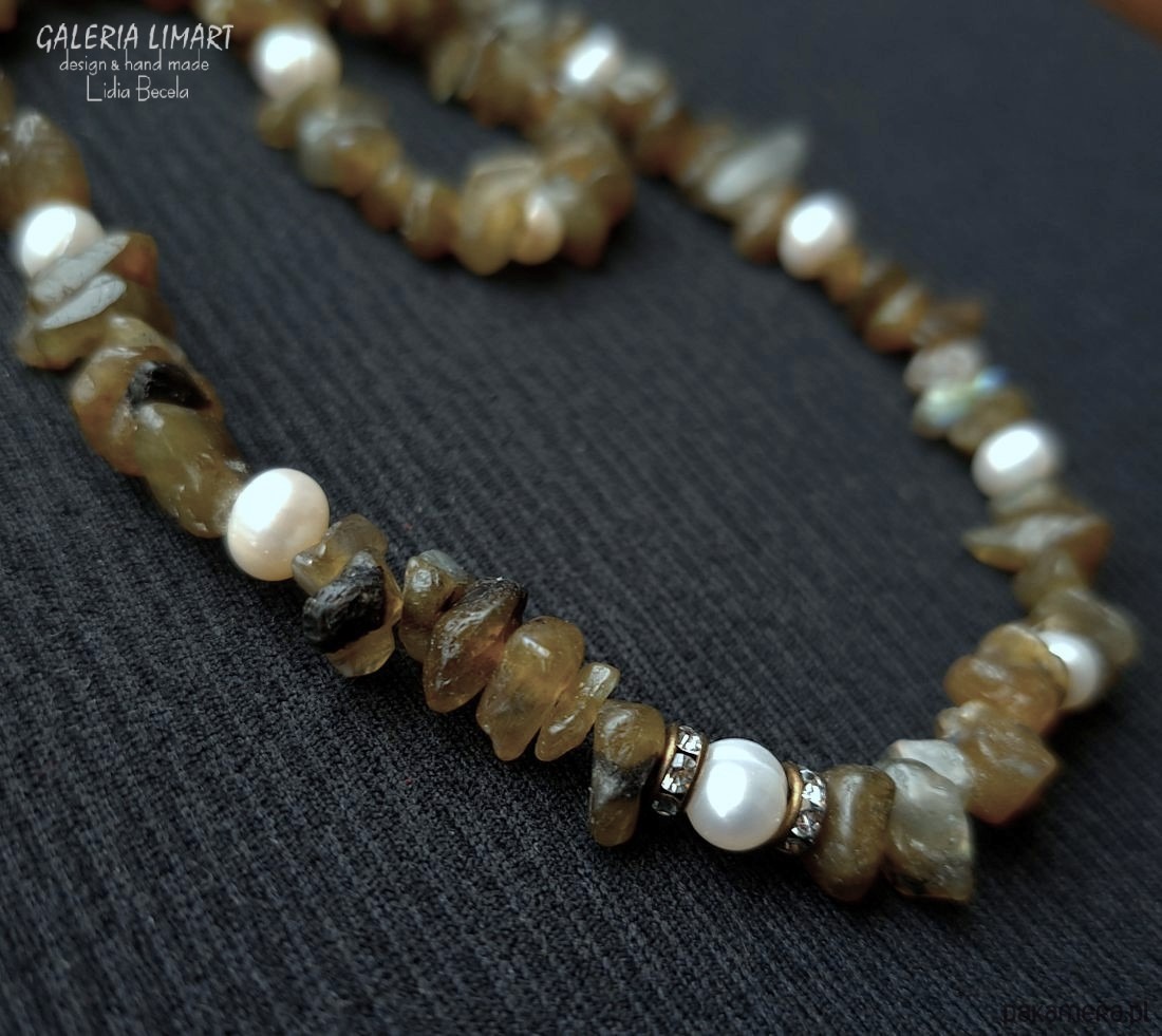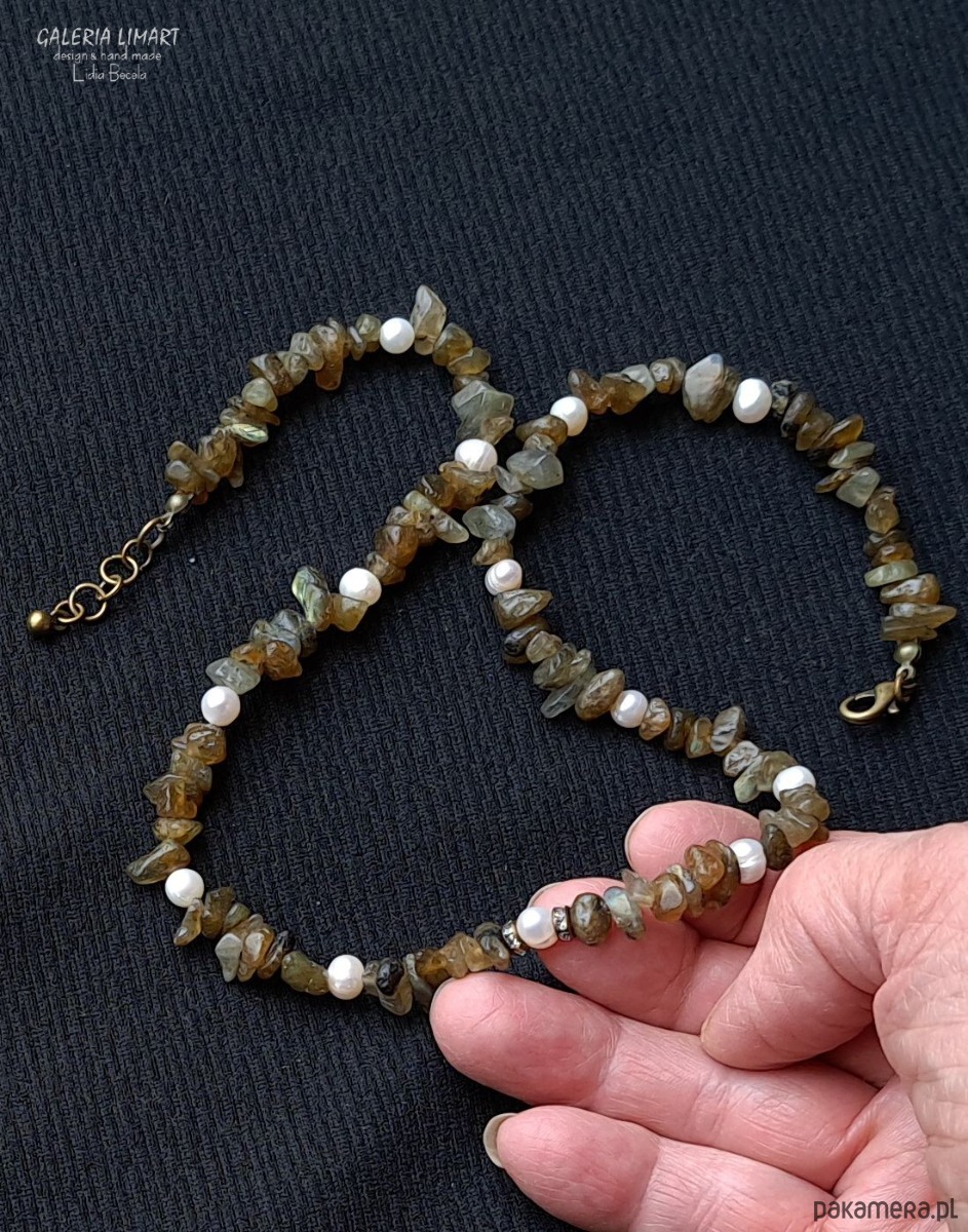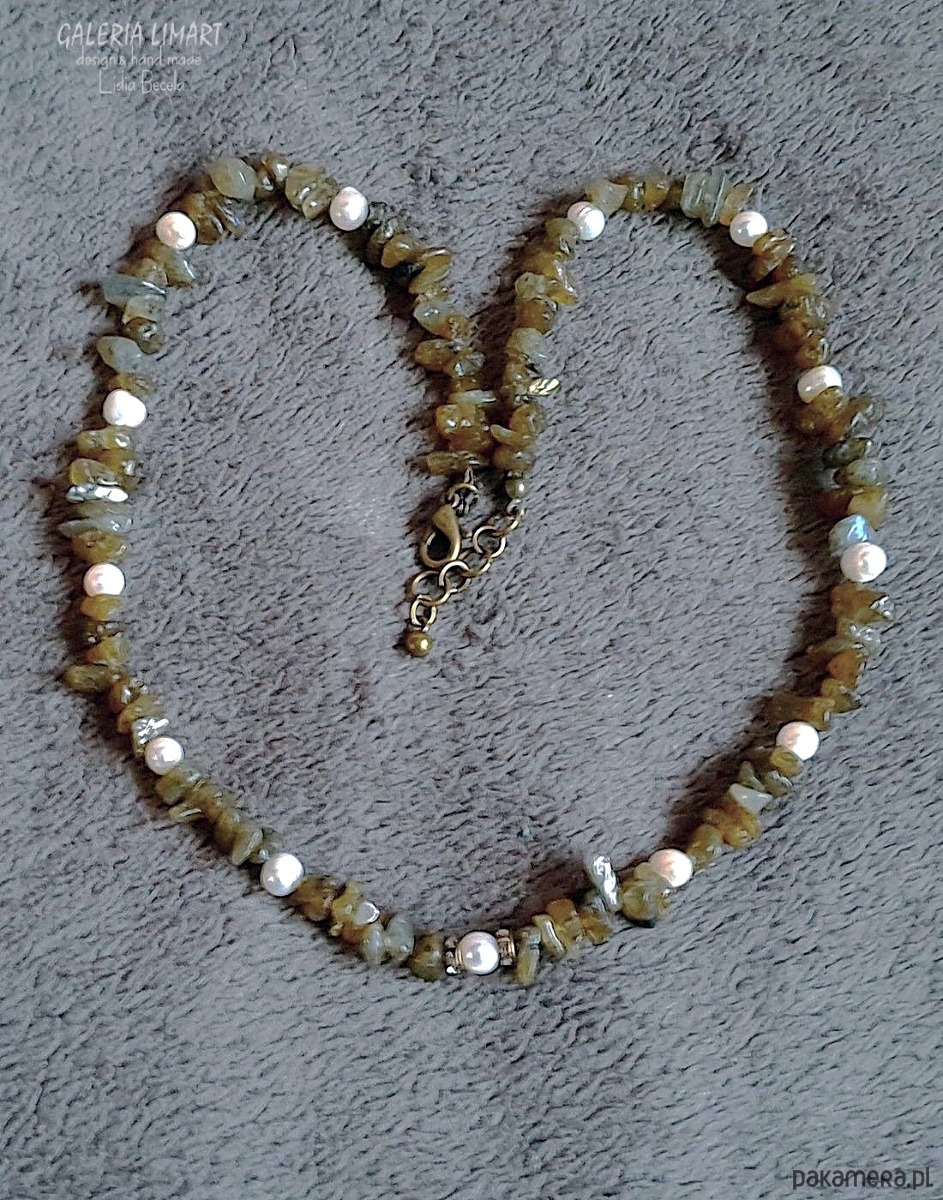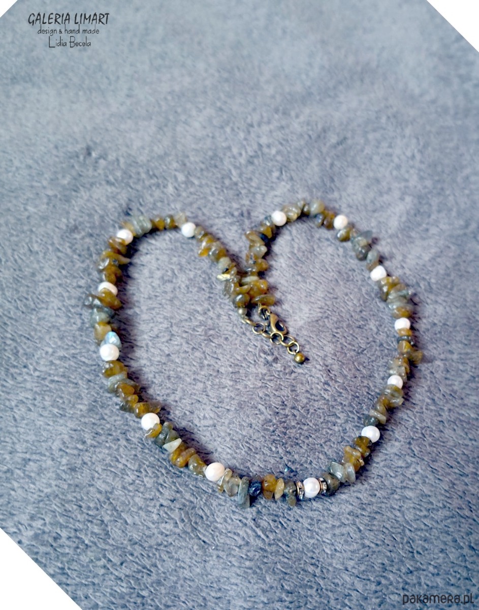 Elegancki naszyjnik z labradorytu i pereł ręcznie robiony prezent dla niej