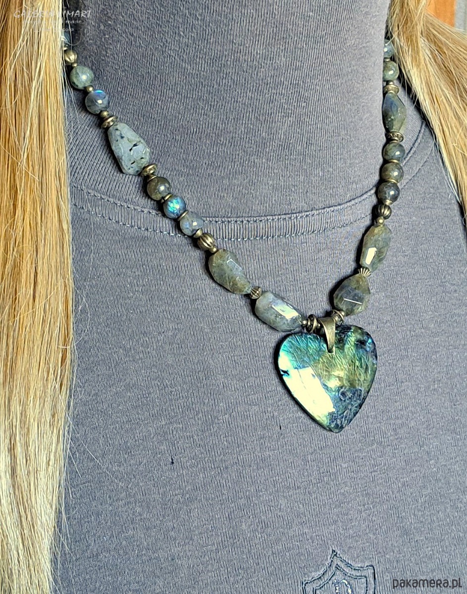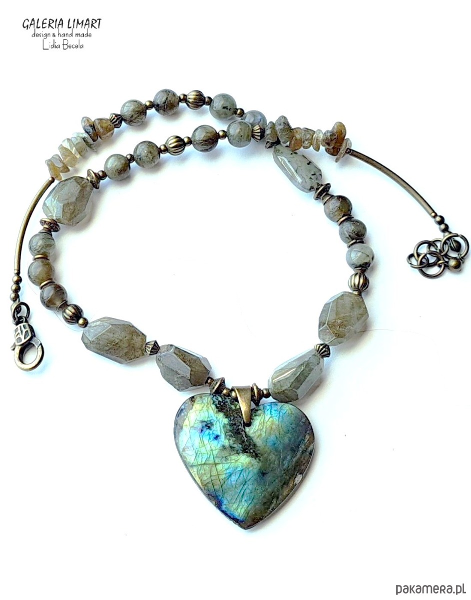 Elegancki naszyjnik z labradorytu z cudnie mieniącym się sercem handmade