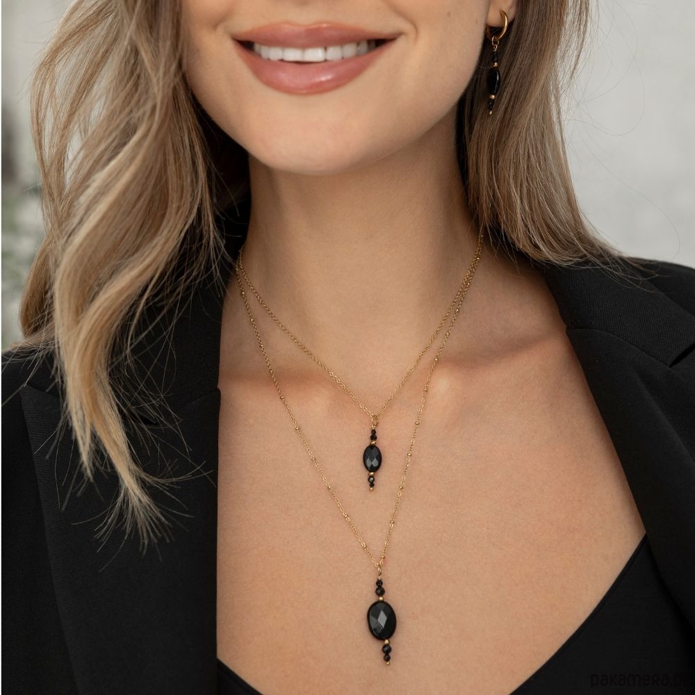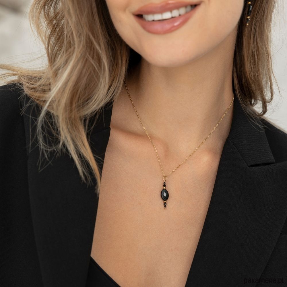 Delikatny, a jednocześnie pełen mocy naszyjnik z Onyksu, Spinelu i Turmalinu czarnego to elegancka biżuteria o głębokiej symbolice. Czerń naturalnych kamieni pięknie kontrastuje ze złotem, tworząc klasyczne połączenie siły, spokoju i harmonii.