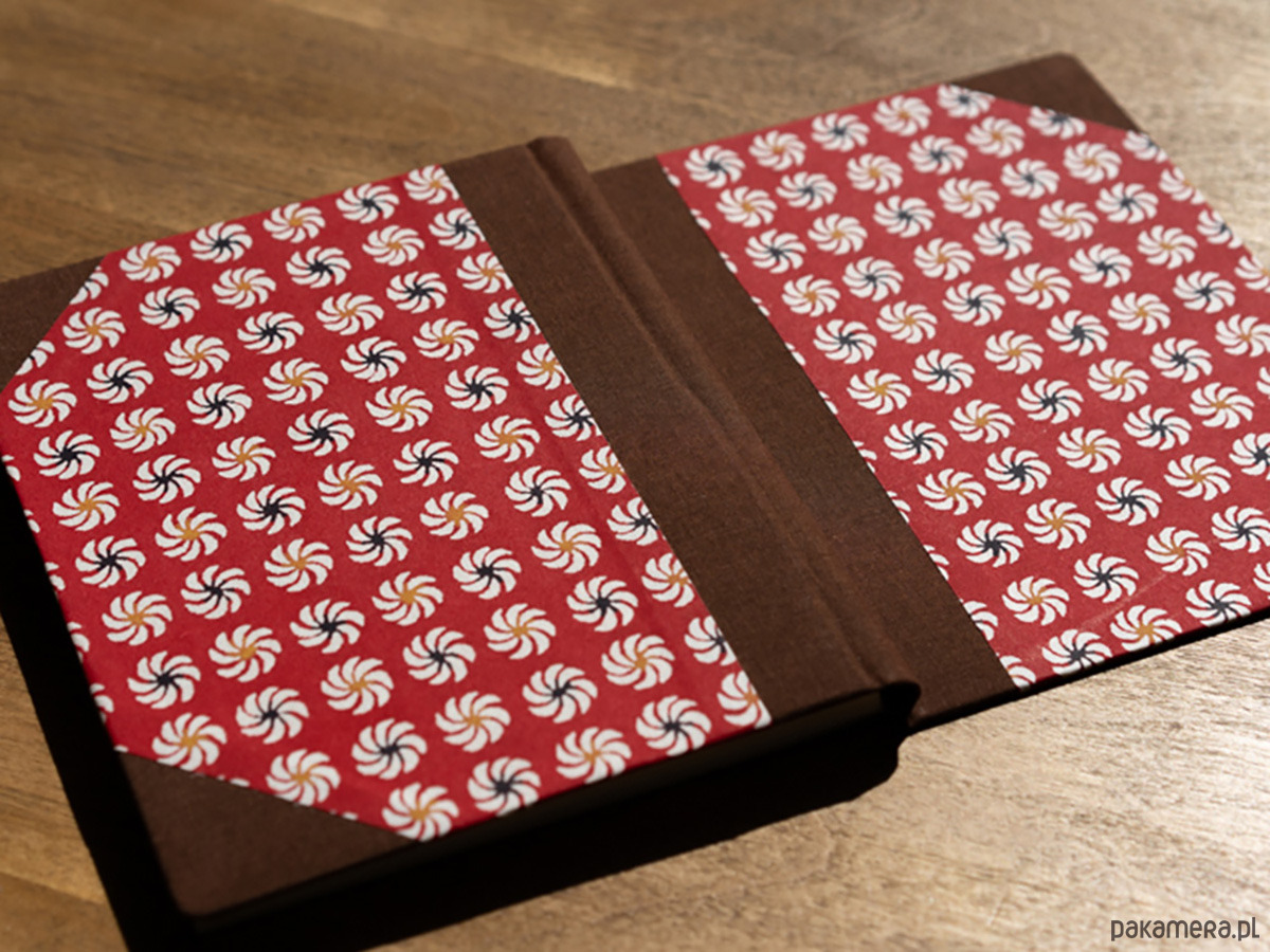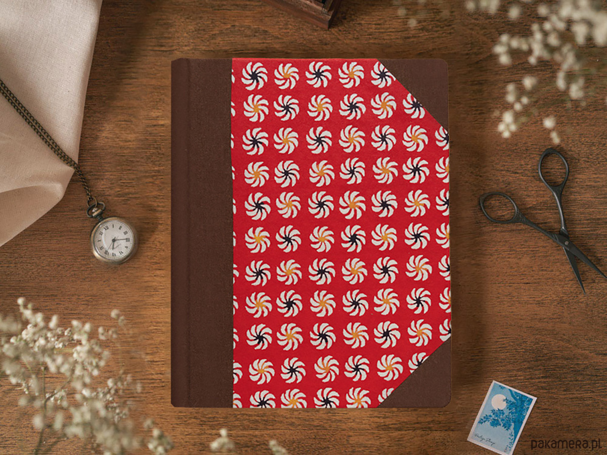 Piękny, elegancki notes. Robiony ręcznie. Okładkę zdobi wyjątkowy japoński papier. Rogi i grzbiet zabezpieczone są płótnem.
