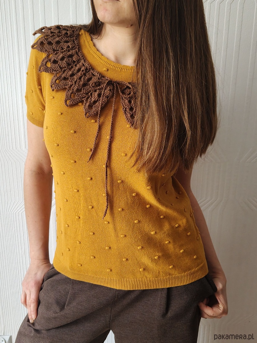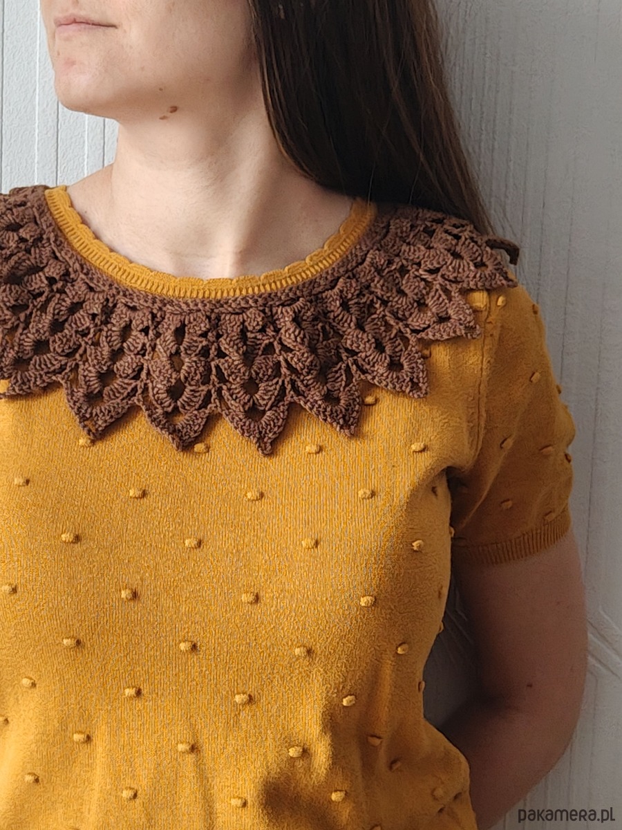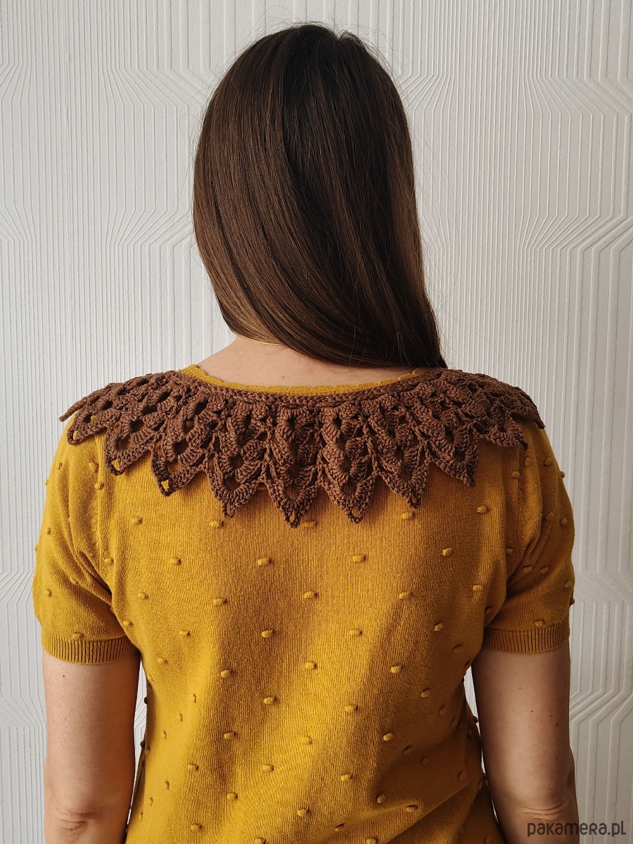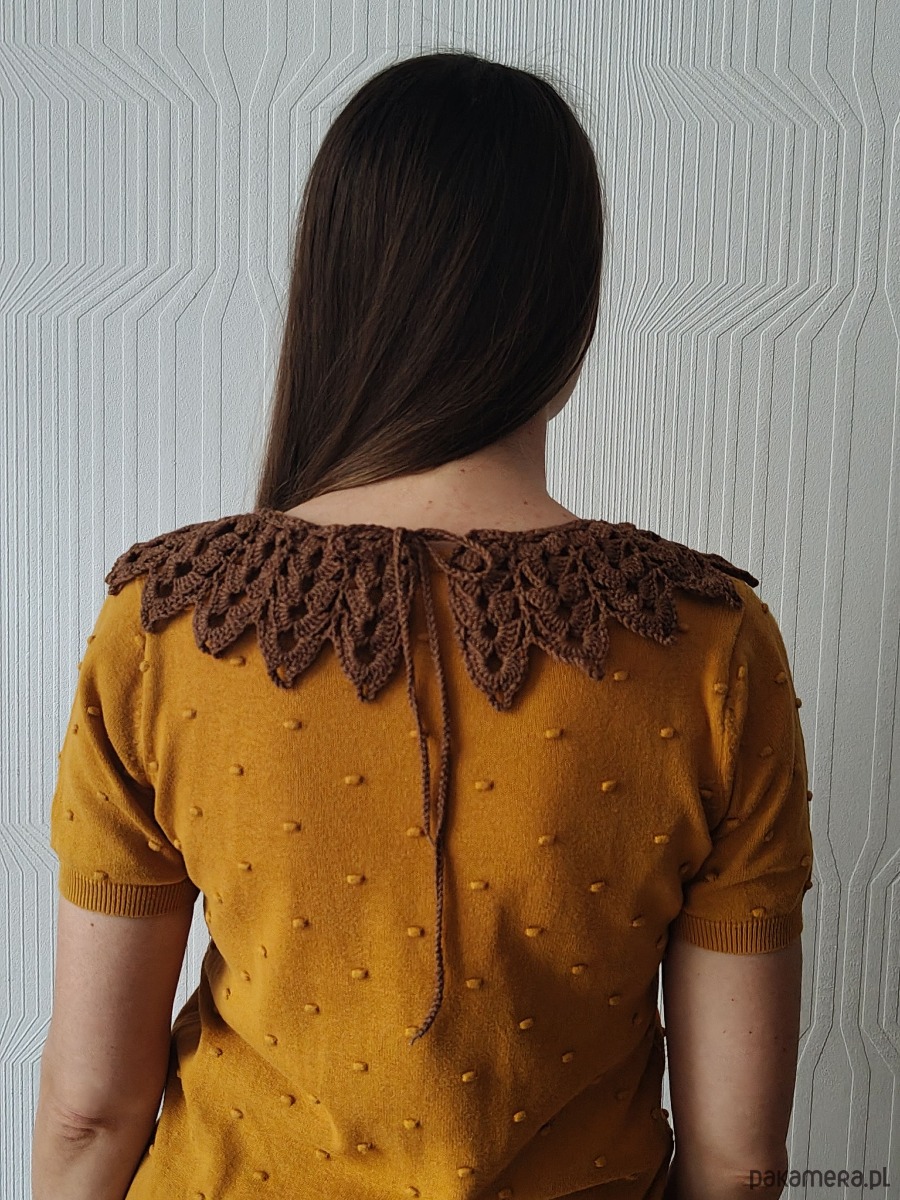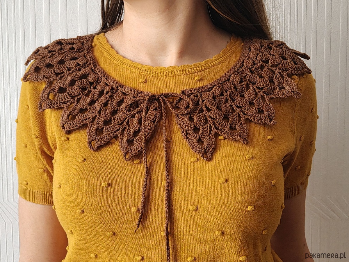 Elegancki szydełkowy kołnierzyk, modny kołnierz w kolorze brązowym