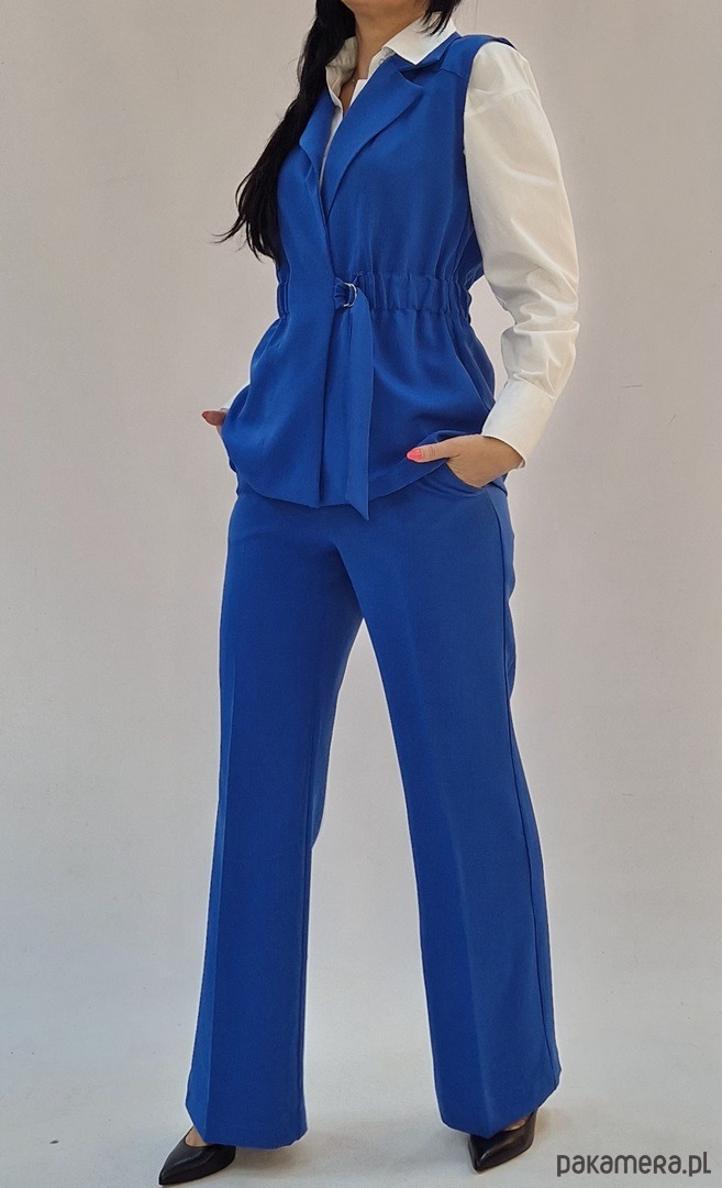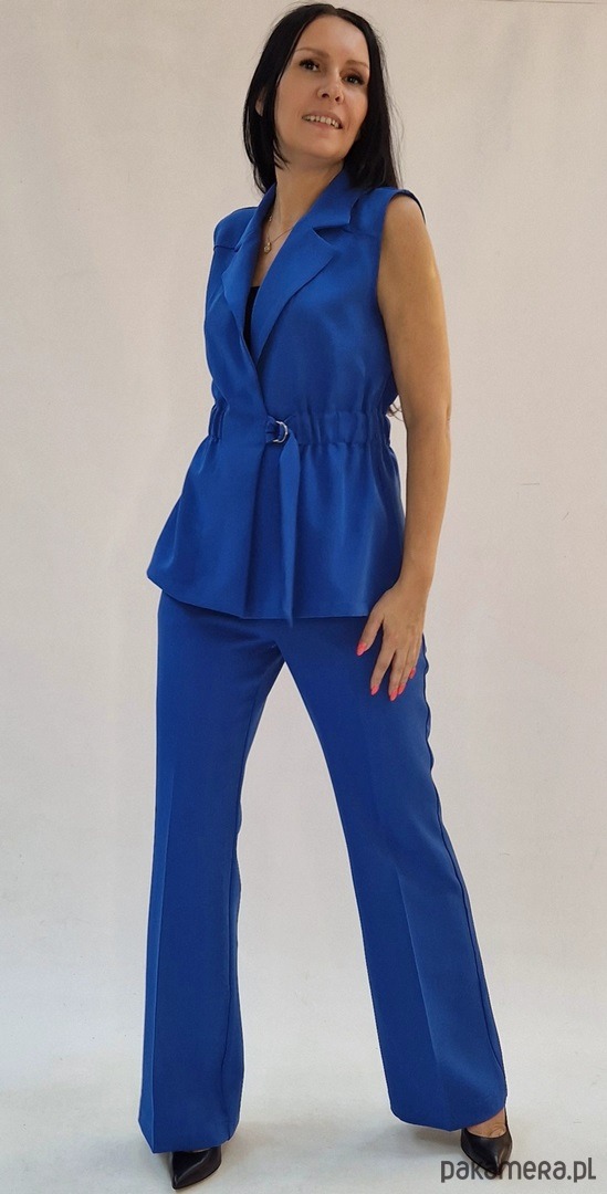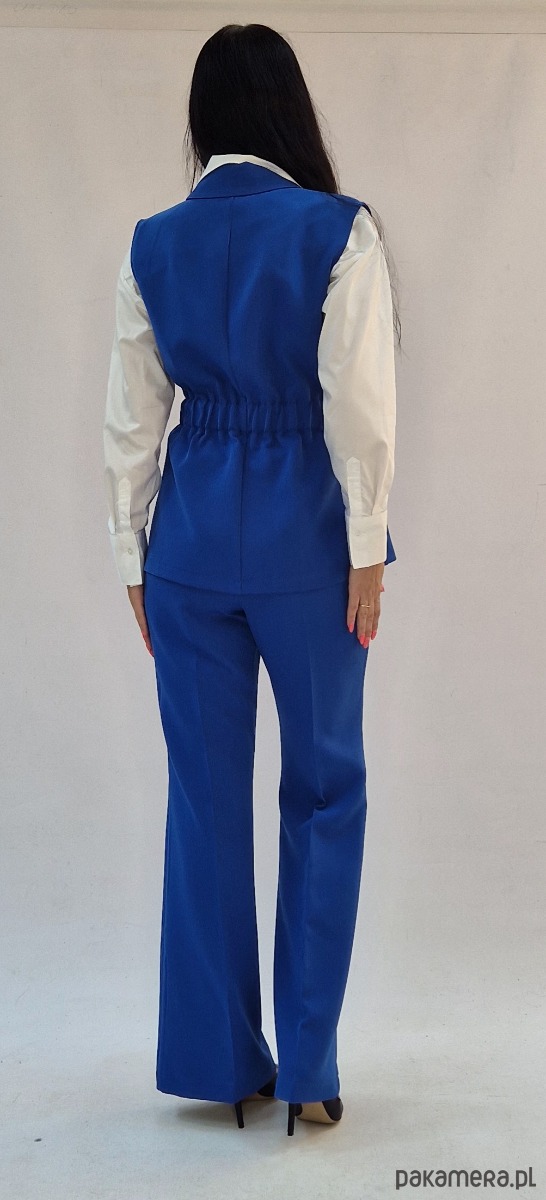 Kamizelka jest bez podszewki , w talii ma wszytą gumę która zmienia charakter kamizelki na bardziej sportowy i nowoczesny. Zapinana paskiem z metalowymi srebrnymi kółeczkami.