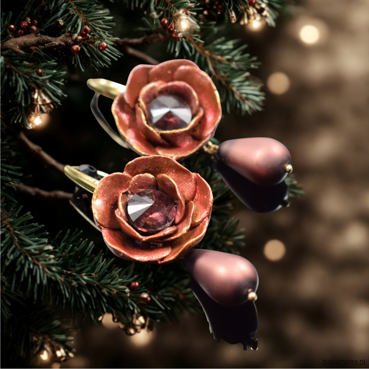 Eleganckie i wyjątkowe kolczyki kwiaty w odcieniu brązu delikatnie wpadającego w bordo, ręcznie wykonane z najwyższej jakości glinki polimerowej.