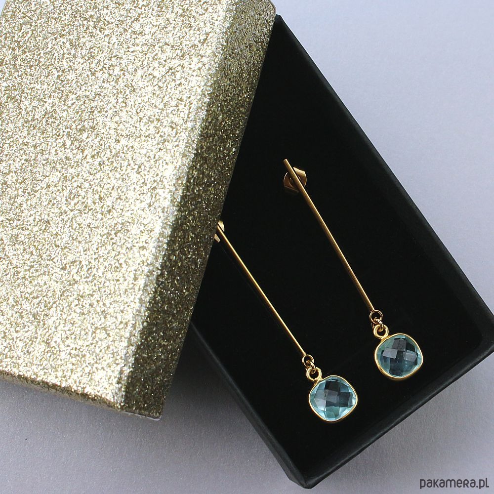 Eleganckie kolczyki pozłacane Topaz błękitny