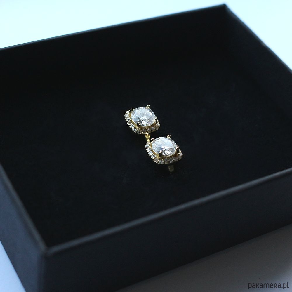 Eleganckie minimalistyczne kolczyki na biglu angielskim, ozdobione pięknymi Moissanitami z brylantowym szlifem w oprawie ze srebra próby 925 pozłacanego 18k złotem oraz cyrkoniami. Kolczyki są bardzo lekkie!