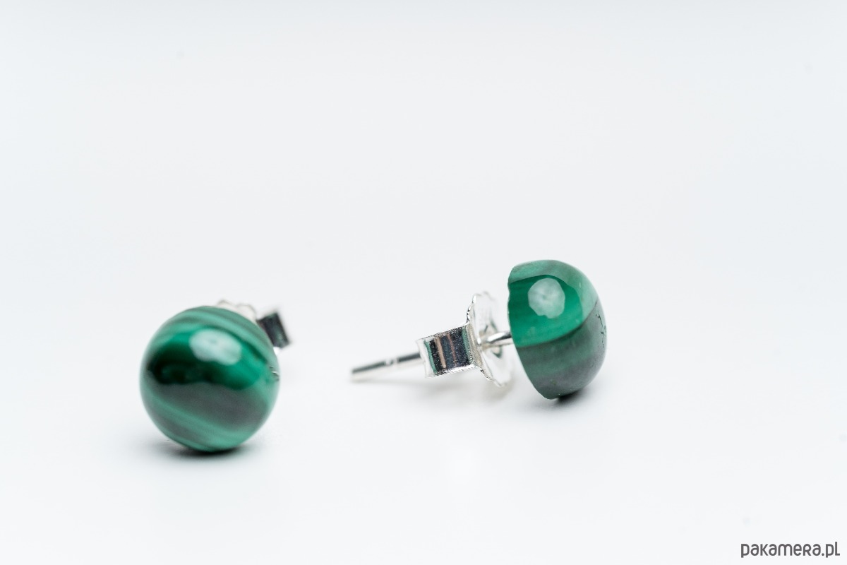 Kolczyki sztyfty z naturalnego malachitu i srebra próby 925