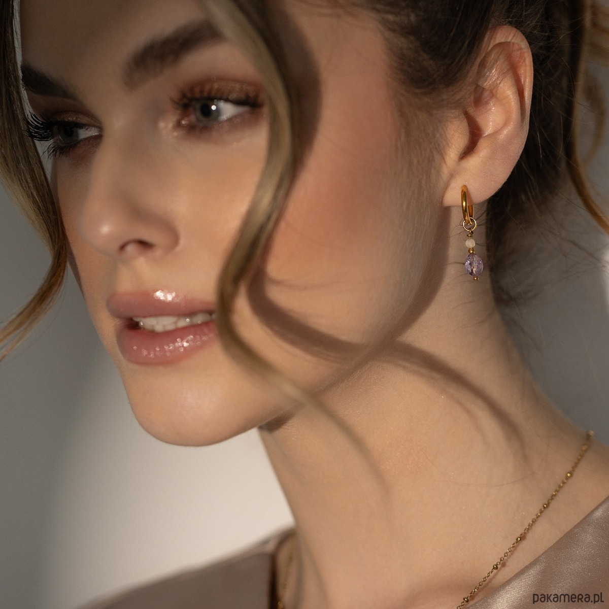 Eleganckie kolczyki z fioletowym Ametystem Srebrna stal szlachetna