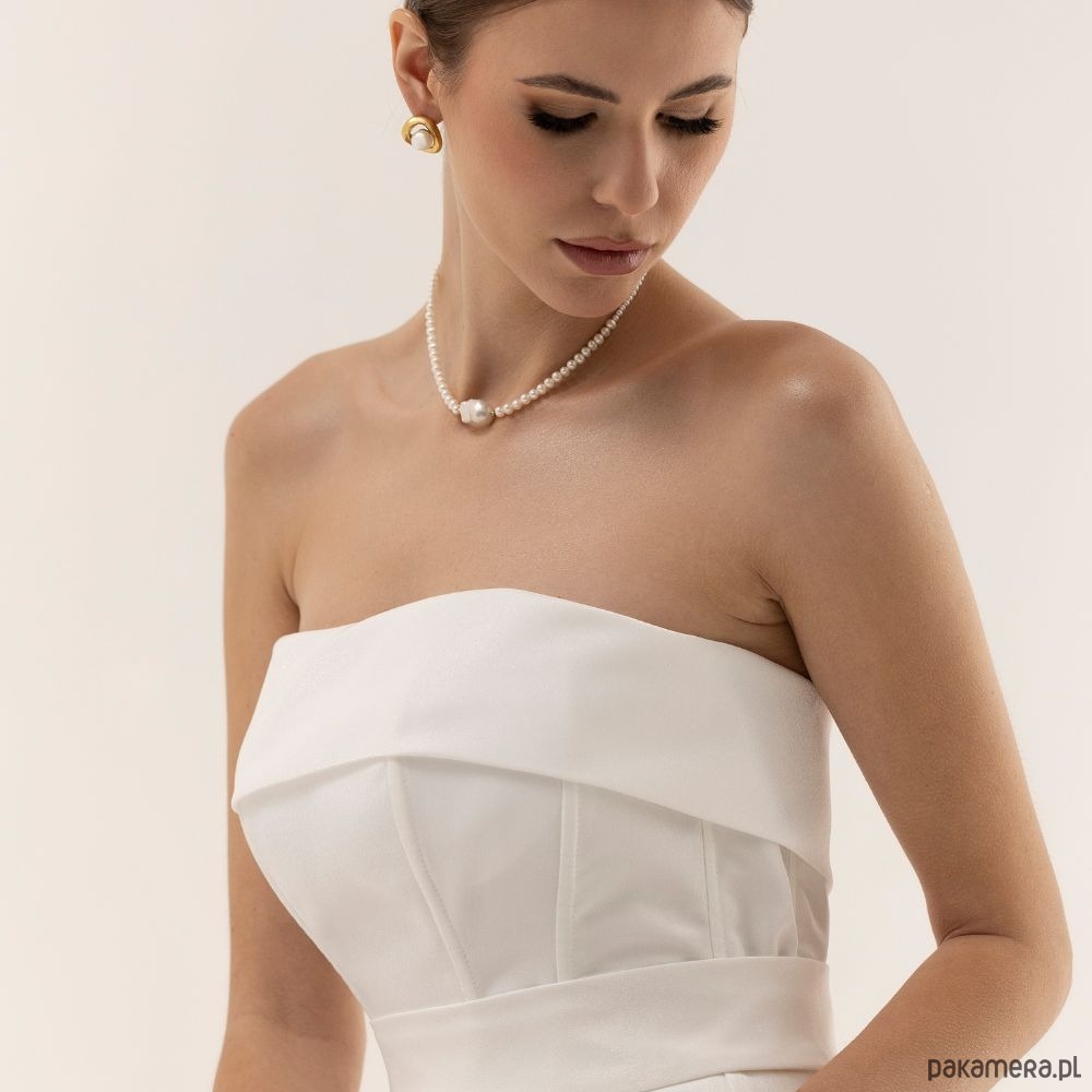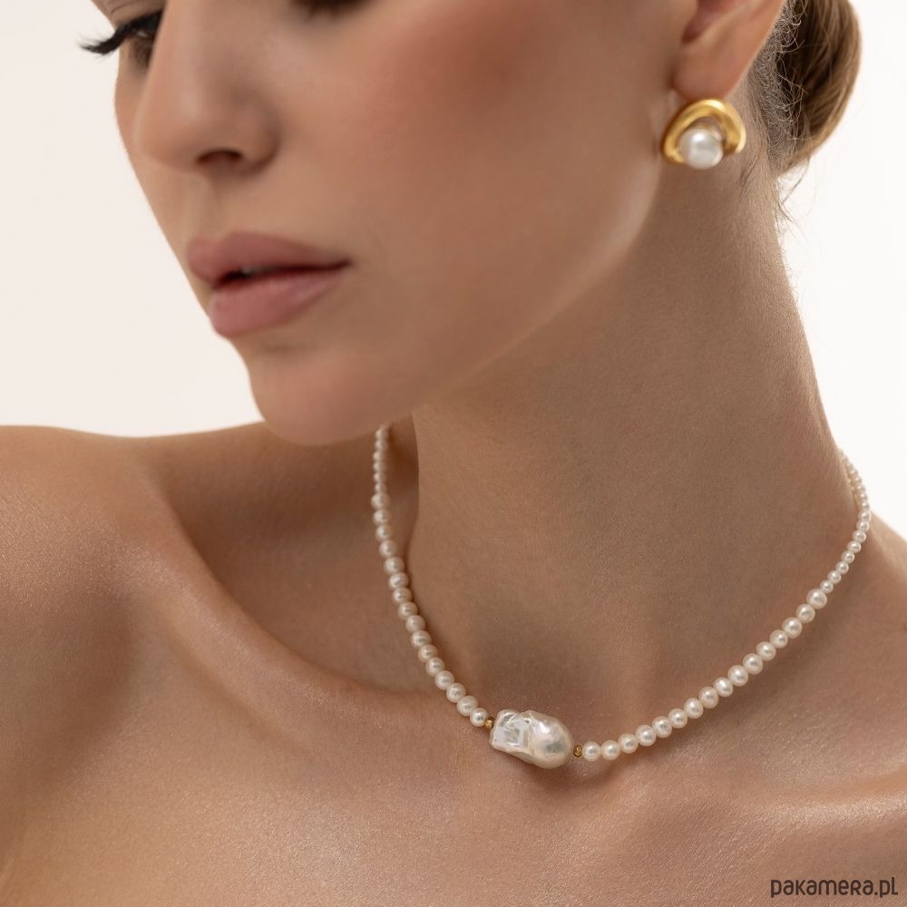 Czasem wystarczy jeden detal. Te kolczyki przyciągają spojrzenie subtelną perłą, otoczoną złotą oprawą, która delikatnie podkreśla jej blask. Całość jest spokojna, elegancka i bardzo kobieca.