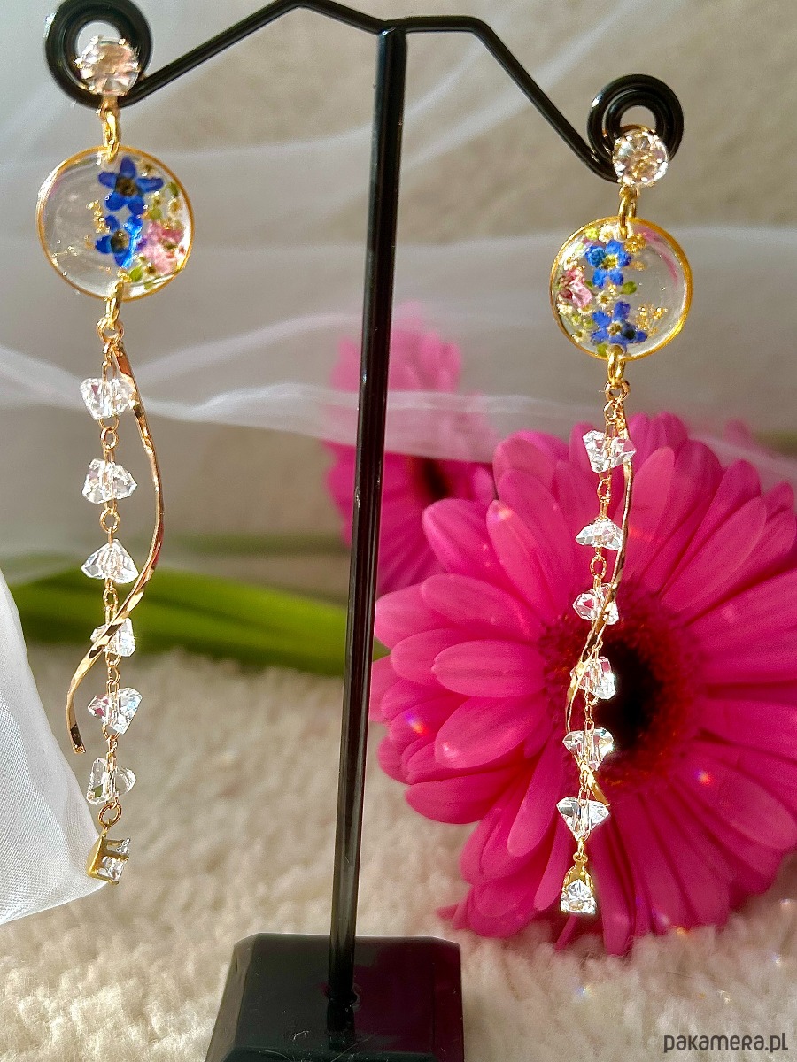 Zachwycające, długie kolczyki z prawdziwymi kwiatami zatopionymi w żywicy to wyjątkowa biżuteria handmade, która przyciąga spojrzenia i podkreśla kobiecą delikatność. Każda para tworzona jest ręcznie z ogromną dbałością o detale, dzięki czemu otrzymujesz unikatowy produkt – nie ma dwóch identycznych egzemplarzy.