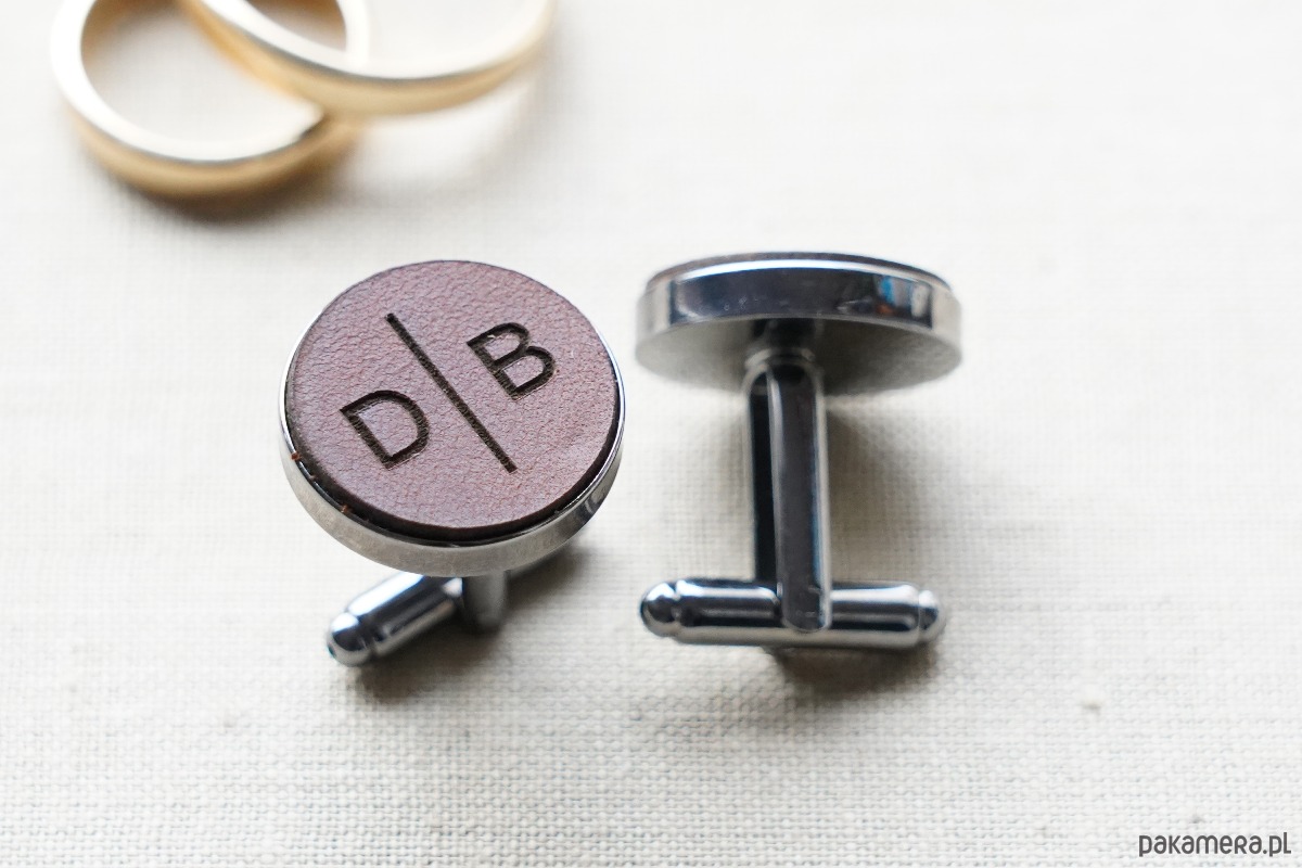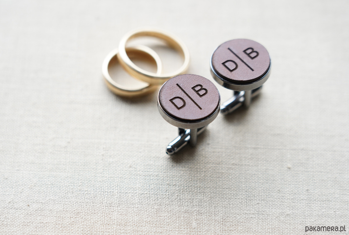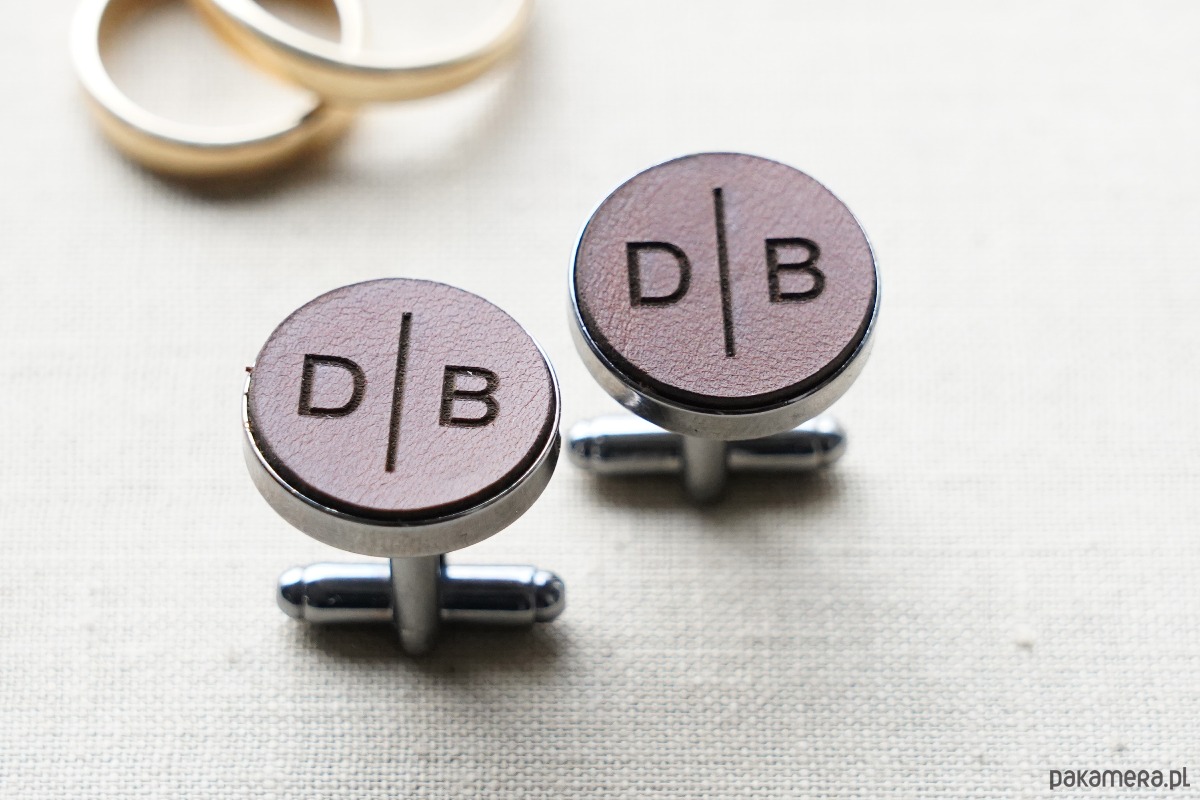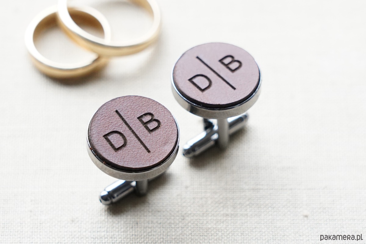 Eleganckie skórzane spinki mankietowe - inicjały - prezent ślubny