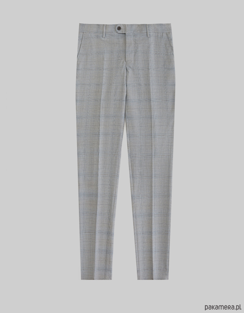 Eleganckie spodnie męskie segrate szary slim fit spodnie segrate szary slim fit 170 102Jasne spodnie Segrate w kolorze szarym z subtelną kratą, zostały wykonane z wysokiej jakości, odpornej na zagniecenia tkaniny z dodatkiem elastanu. Doskonale sprawdzą się w zestawieniu z marynarką z tej samej tkaniny, jak i podczas wyjścia ze znajomymi w zestawieniu z gładką marynarką lub samą koszulą.