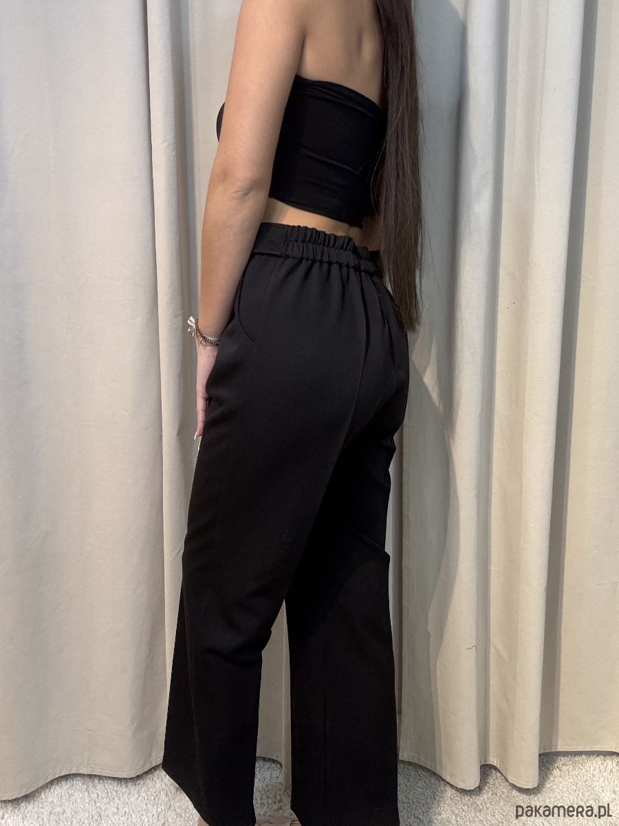 Czarne eleganckie spodnie wykonane głównie z wiskozy. Idealne w połączeniu z marynarką.