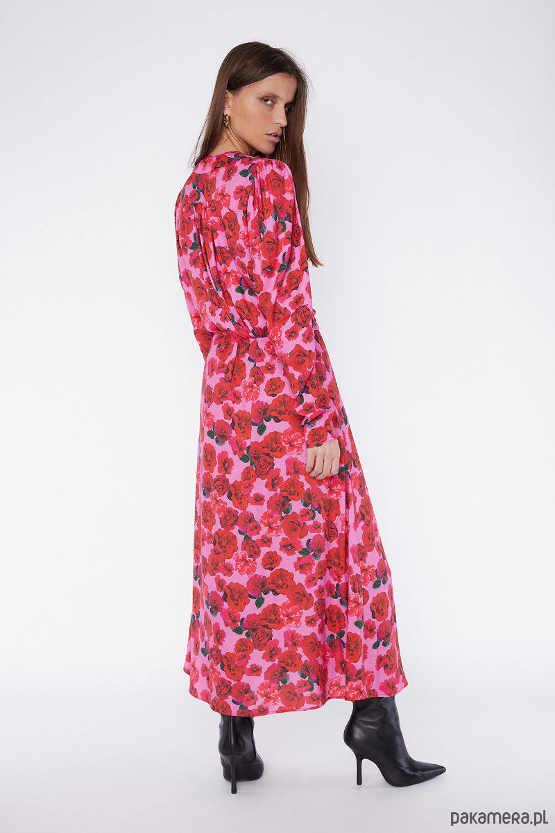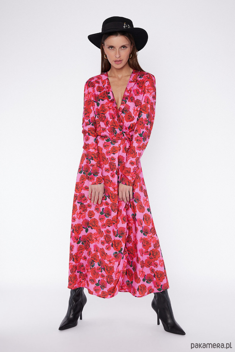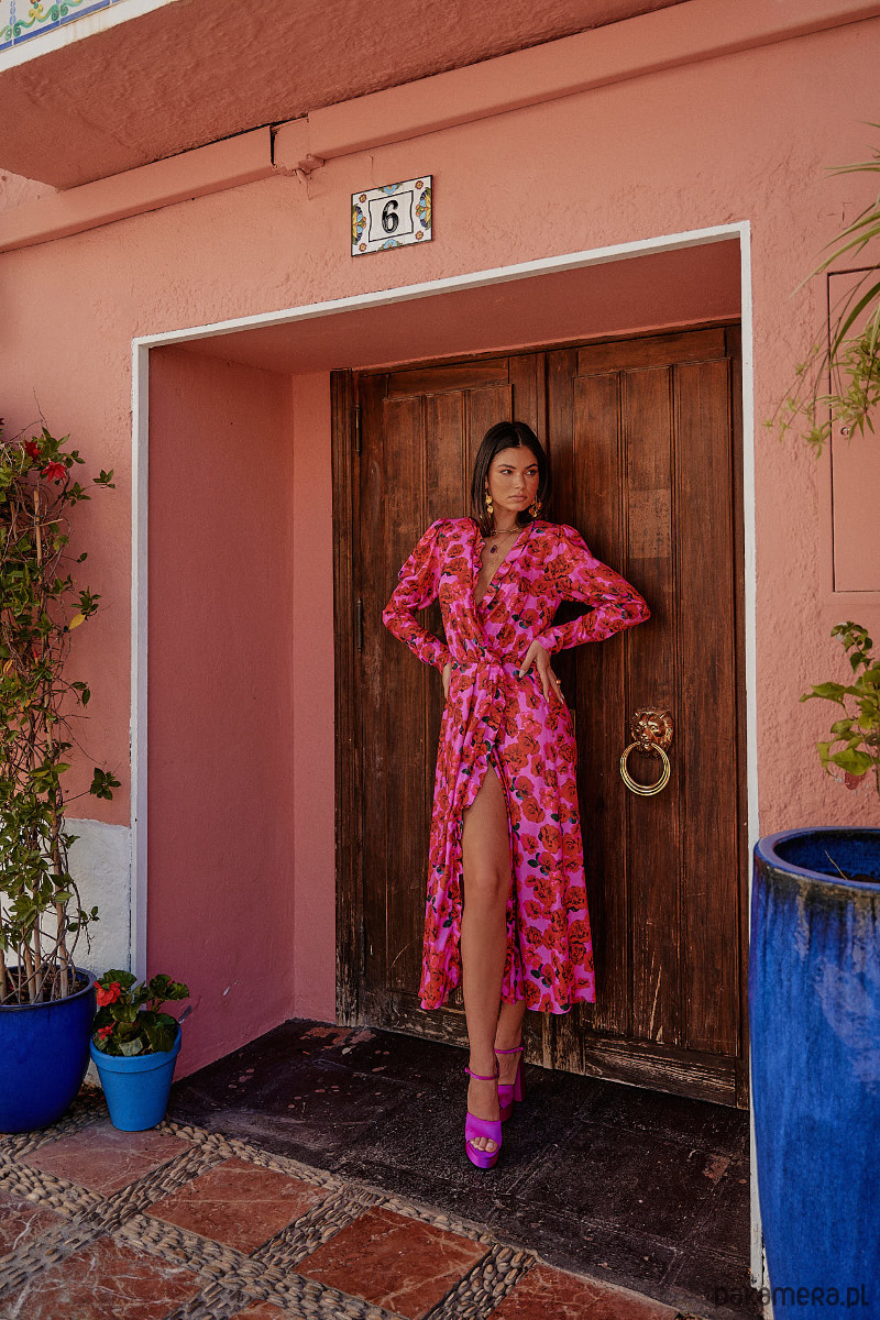 Jako, że wierzymy, że ubrania mają silny wpływ na nasze samopoczucie, to ELENA PINK ROSE to model, który absolutnie skazuje nas na świetny nastrój. Nas i wszystkich, którzy będą mieli okazję Cię w nim spotkać. Sukienka midi, kopertowy krój, perfekcyjnie skrojony długi rękaw, poduchy w ramionach w opcji click in - click off i ten print - you're gonna love her!