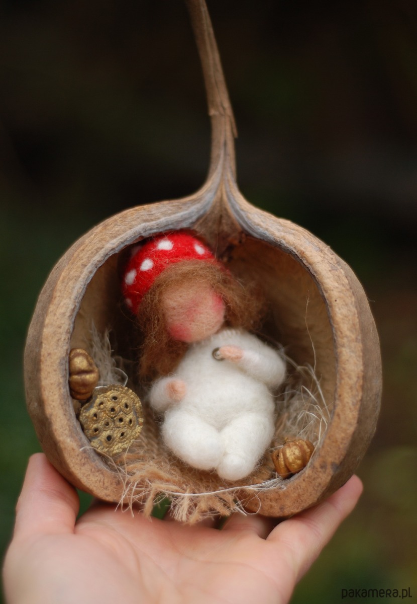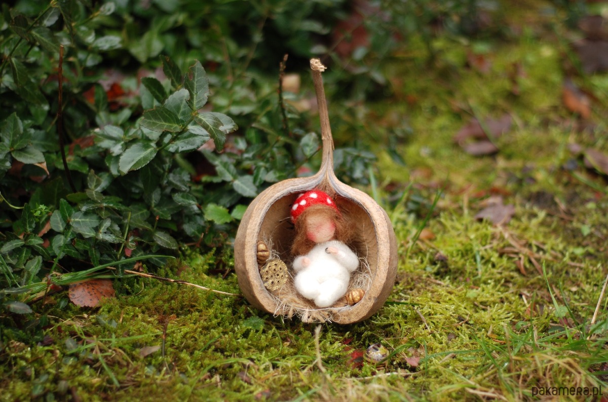 Dziecię Elfów- wykonane metodą filcowania na sucho z wełny Merynos.