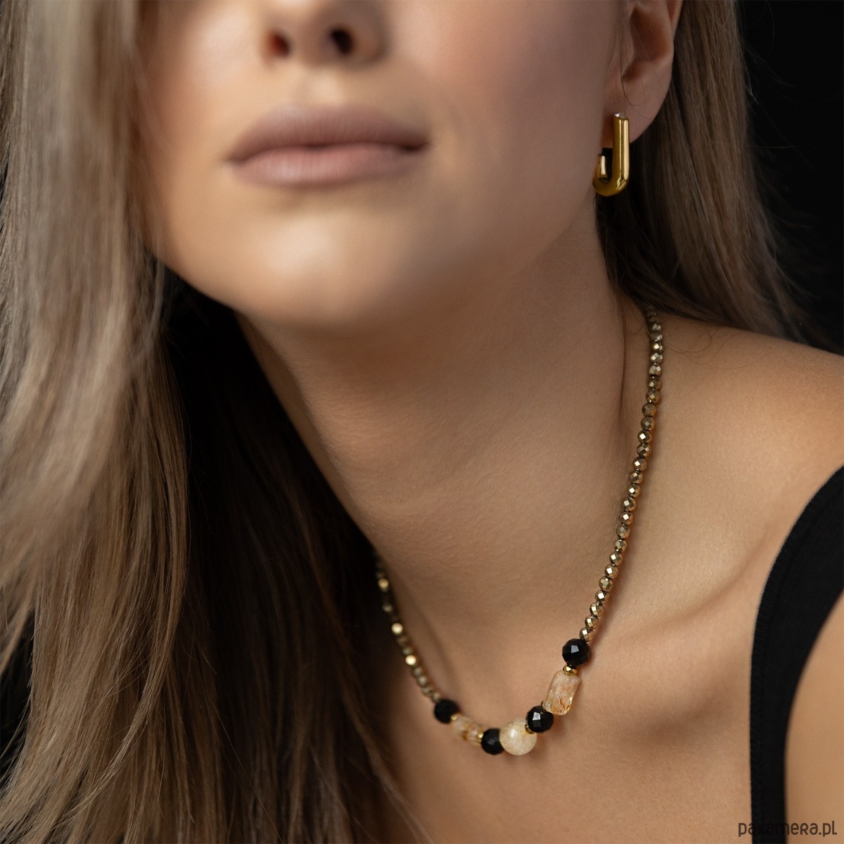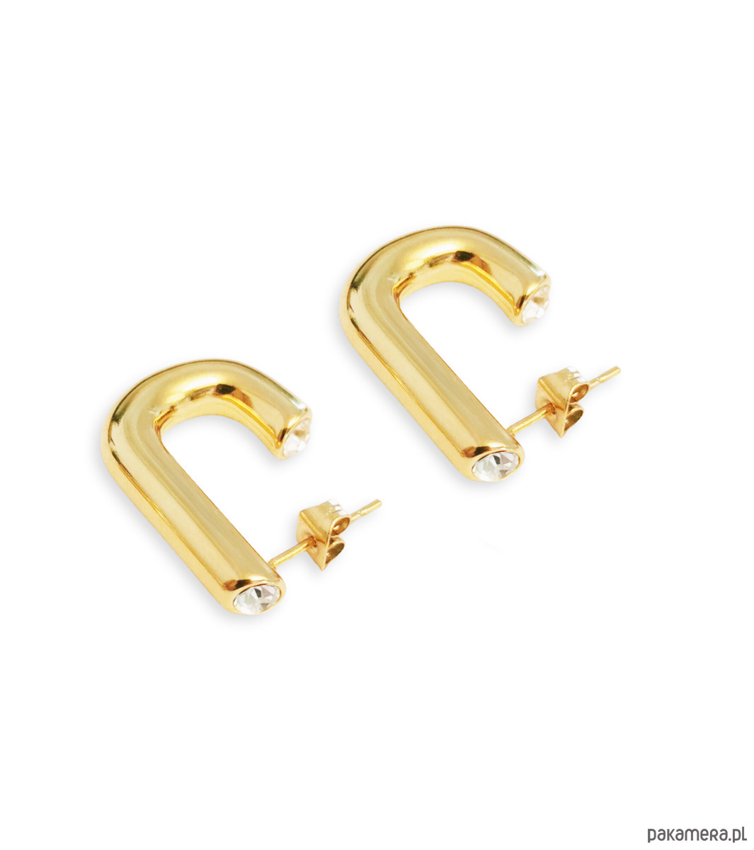 Wykonane z pozłacanej stali szlachetnej, są odporne na wodę, nie ciemnieją i nie uczulają, co sprawia, że zachowują swój idealny wygląd przez długi czas. Lekko połyskująca powierzchnia odbija światło, a kryształowe oczka umieszczone na końcach dodają im finezji i nowoczesnego charakteru.