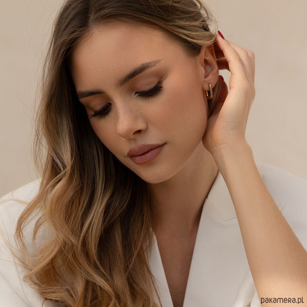 Kolczyki zostały wykonane z wysokiej jakości stali szlachetnej, która jest trwała i przyjazna dla skóry. Zapięcie typu sztyft gwarantuje wygodę noszenia i pewne trzymanie przez cały dzień. To model, który świetnie komponuje się zarówno z białą koszulą i jeansami, jak i z elegancką sukienką – idealny wybór dla kobiet, które lubią podkreślać swój styl detalami.
