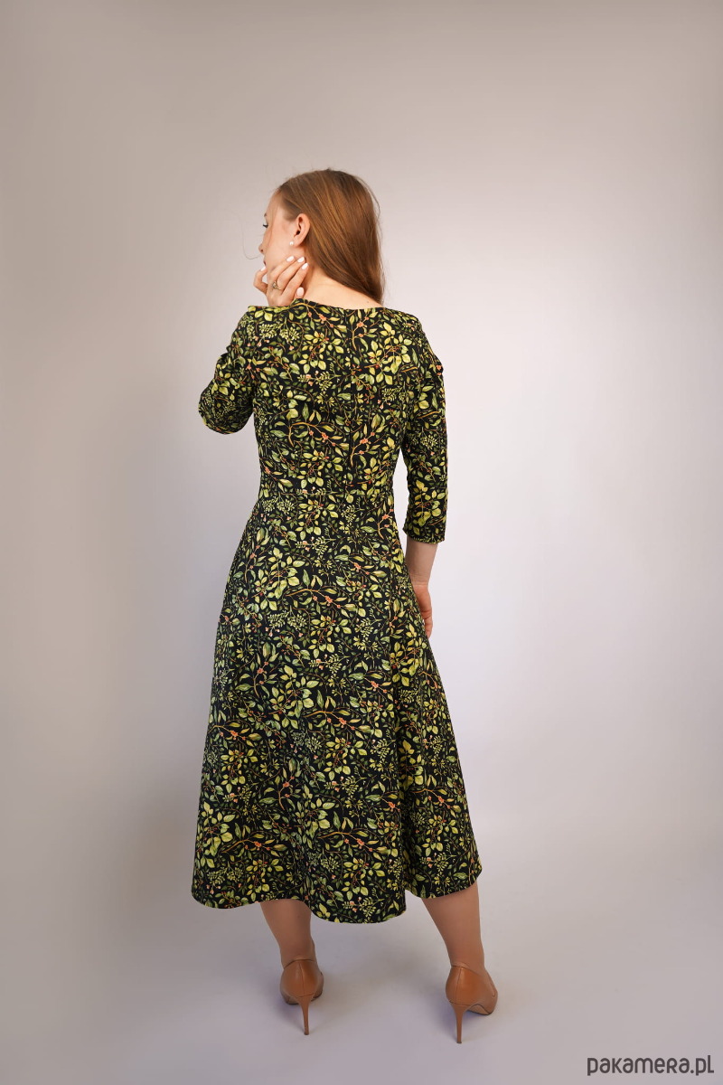 Lekko rozkloszowany dół spódnicy o długości midi przepięknie faluje w ruchu, a dzięki swej długości optycznie wysmukla sylwetkę.