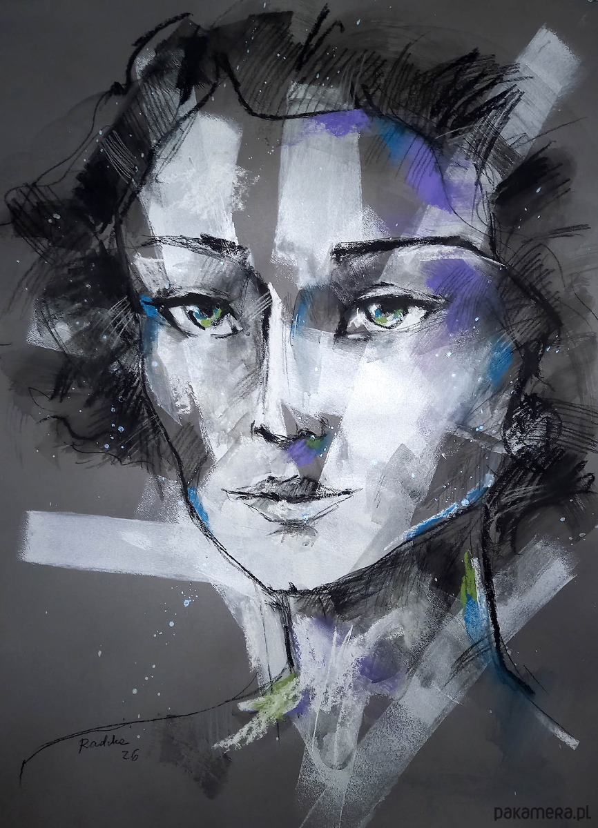 Rysunek wykonany pastelami suchymi, węglem, akrylami, kredkami akwarelowymi i tuszem na brystolu 50x70 cm, zabezpieczony fiksatywą, bez ramy. Na życzenie tworzę symulację kolorystyczną passe partout pasującego do rysunku. Kolory mogą nieznacznie odbiegać od oryginału w zależności od ustawień monitora. Pracę wysyłam w tubie przesyłką priorytetową.