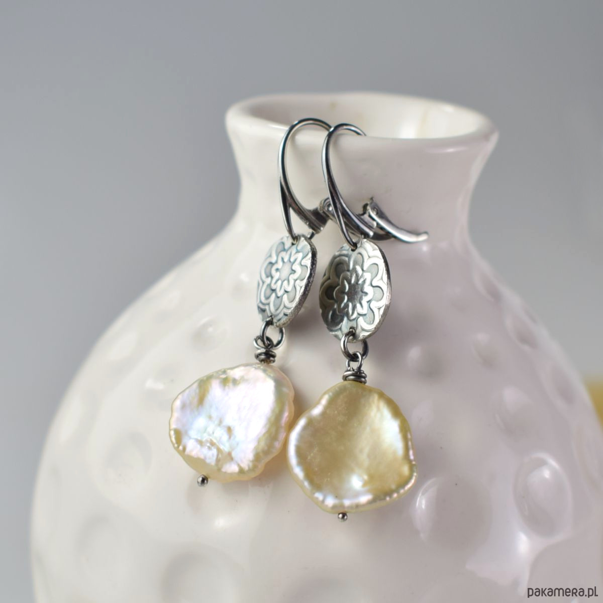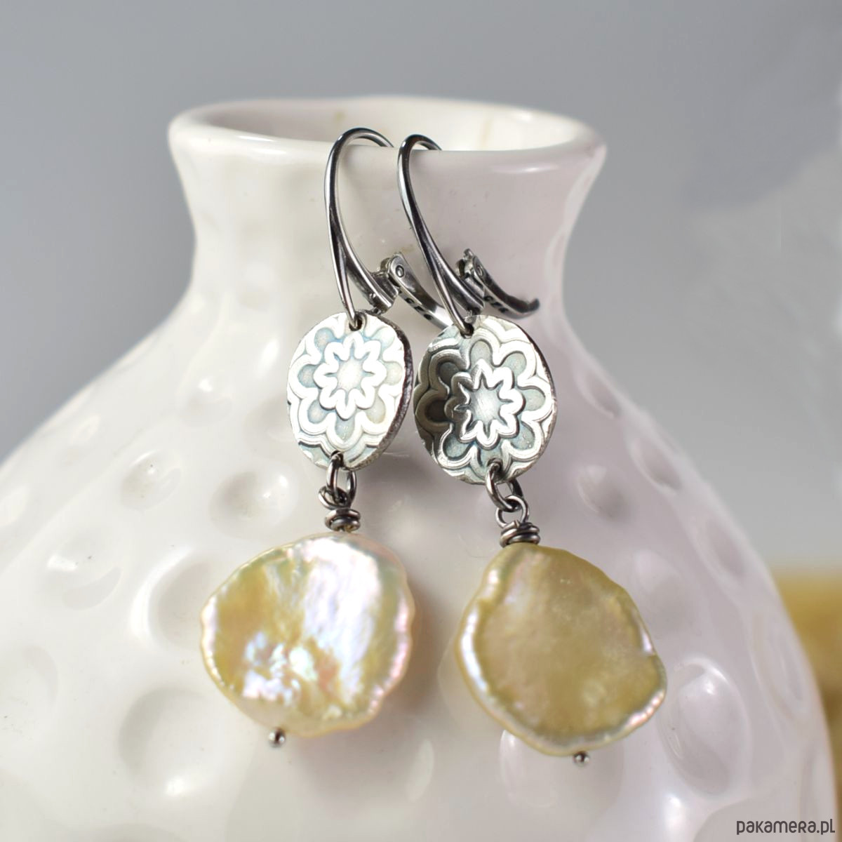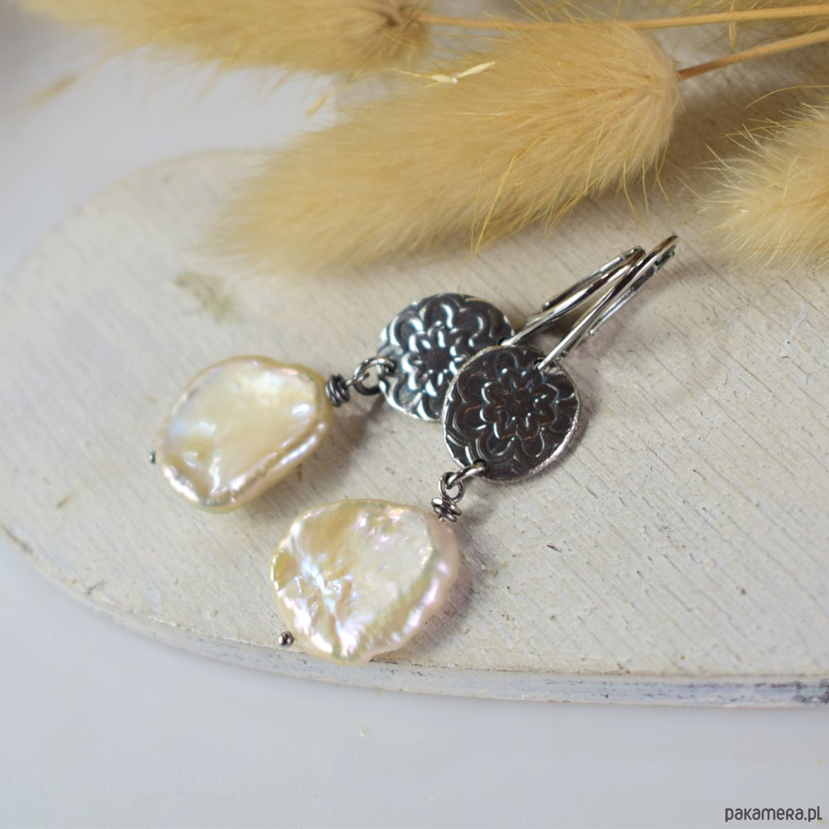 Kolczyki zostały zaprojektowane i wykonane od podstaw w pracowni Sunflower. Jedyny egzemplarz. Długość całego kolczyka 5 cm. Użyte materiały: perła, srebro 925 oksydowane. Biżuteria zostanie ozdobnie zapakowana.