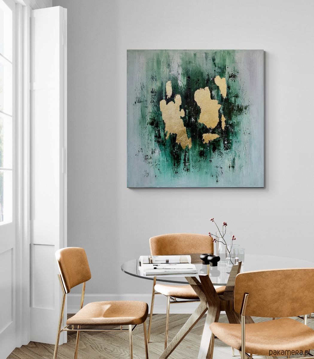 Duży obraz na bawełnianym płótnie, wyraźna struktura, akryl, wymiary 80 x 80 cm.