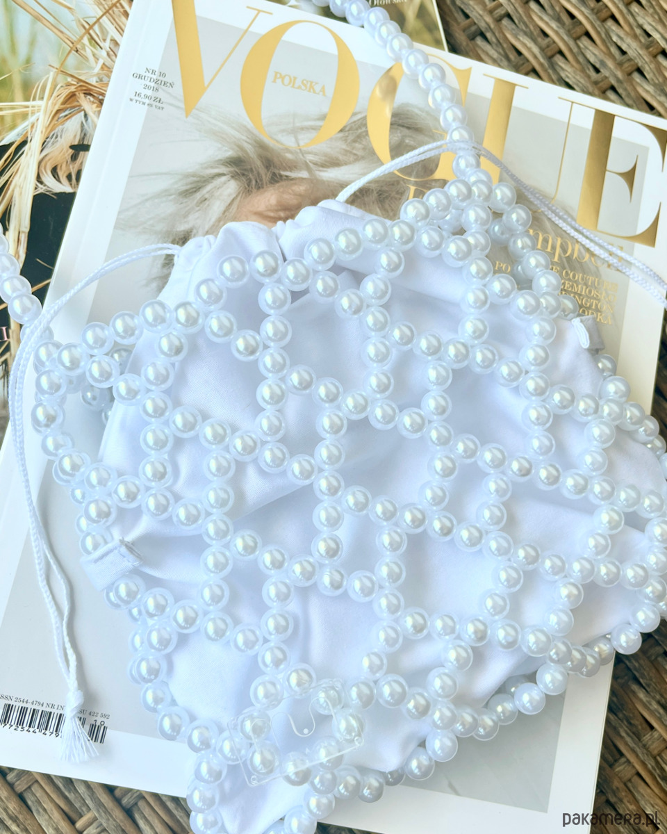 EMMA Pearl/White torebka z koralików